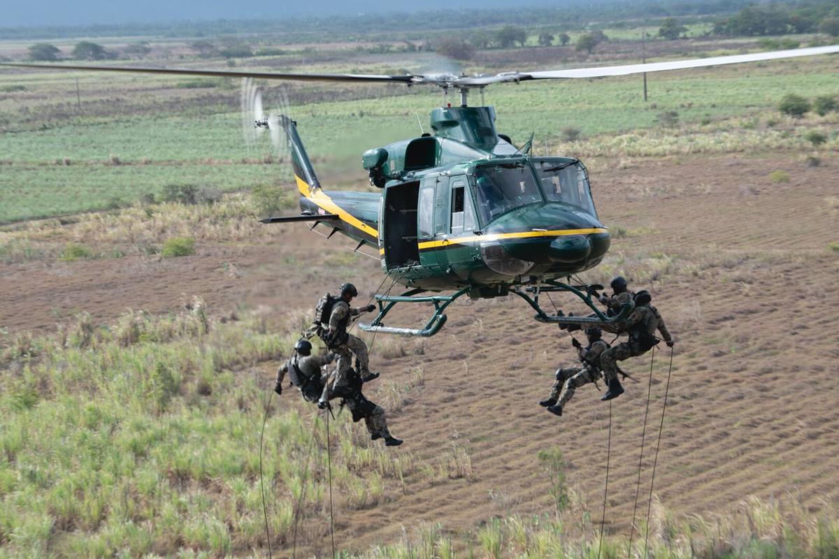 Bell 412M podczas desantu funkcjonariuszy służb specjalnych