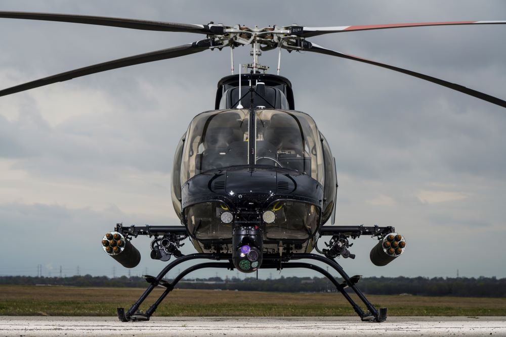 Bell 407M uzbrojony w niekierowane pociski rakietowe i karabiny maszynowe Minigun kal. 7,62 mm