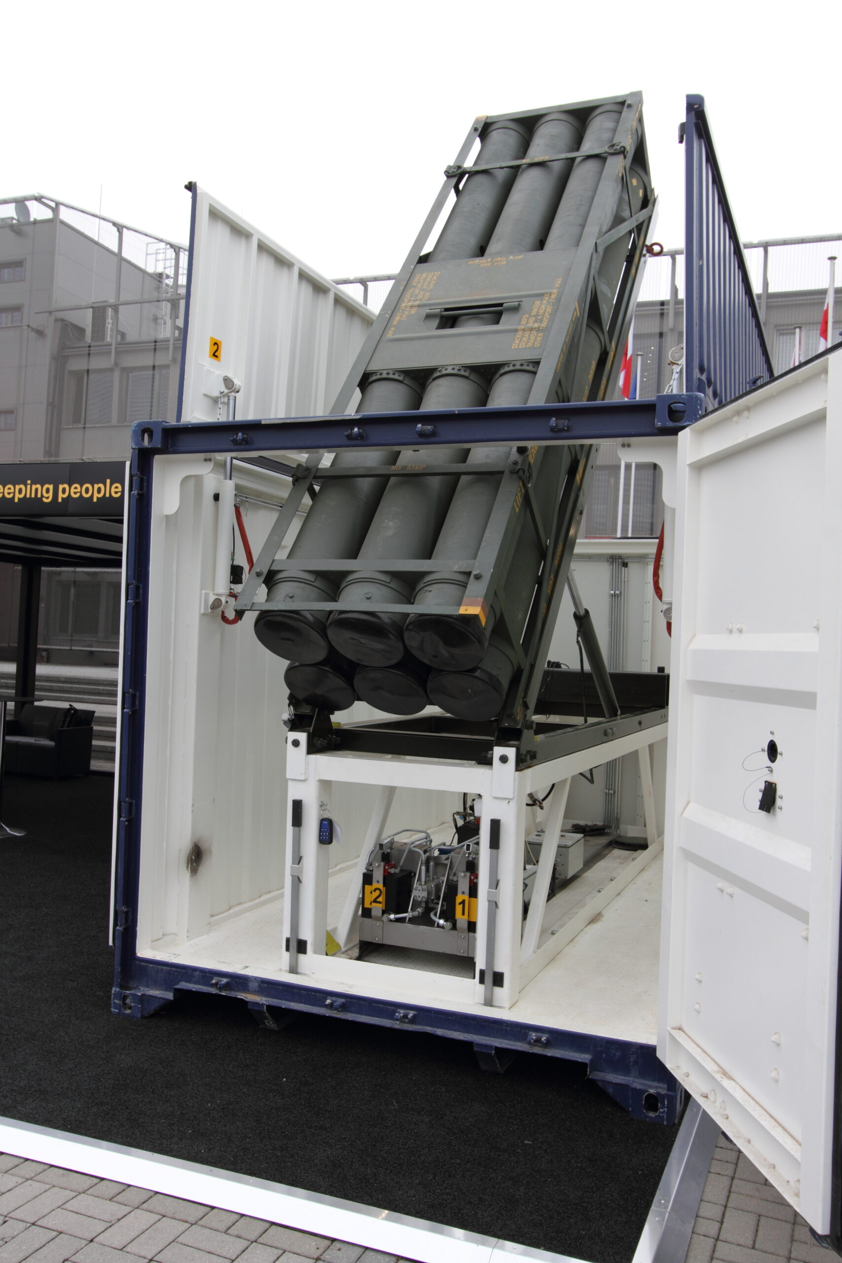 Wyrzutnia pocisków GLSDB zamontowana we wnętrzu kontenera – takie rozwiązanie zaprezentował SAAB na tegorocznej wystawie MSPO / Zdjęcia: Grzegorz Sobczak