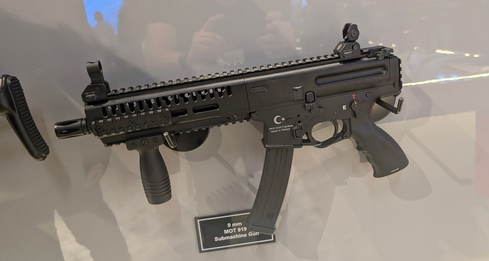 Na tej samej ściance znalazł się także pistolet maszynowy MOT-919. W przeciwieństwie do wielu innych konstrukcji tego typu, wykorzystano w nim system gazowy (tłok o krótki skoku) oraz ryglowany obrotowo zamek. MOT-919 cechuje się m.in. obustronnymi manipulatorami oraz komorą spustową zakończoną pionowym odcinkiem szyny Picatinny, co umożliwia swobodne kompletowanie pistoletu maszynowego z kolbami wielu rodzajów.