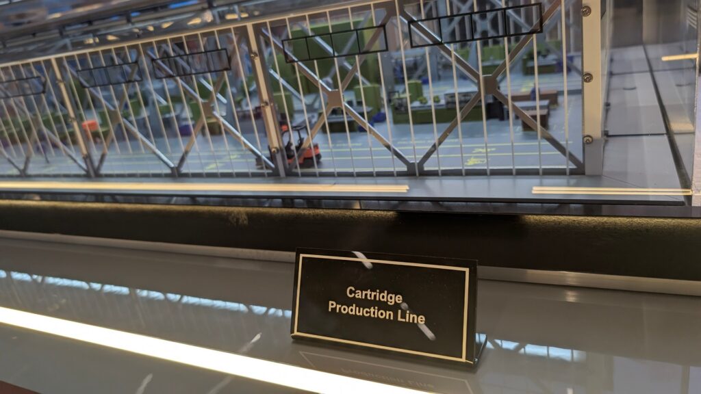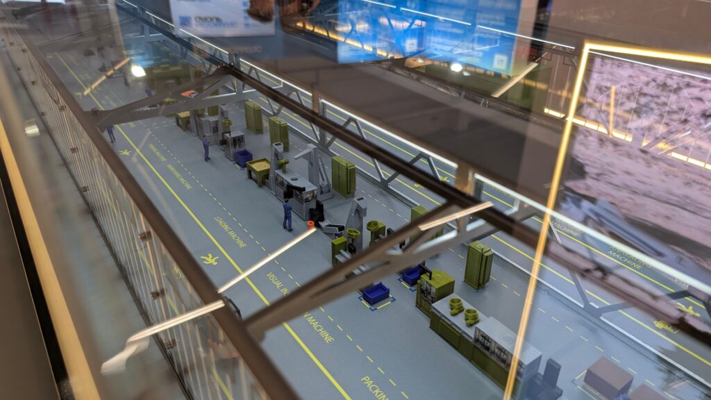 Koncern MKE jest również w stanie tworzyć z klientem nowe fabryki amunicji, dzieląc się technologią i wiedzą. Na stoisku zaprezentowano makietę linii produkcji amunicji.