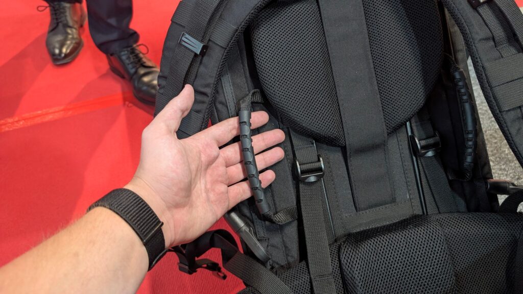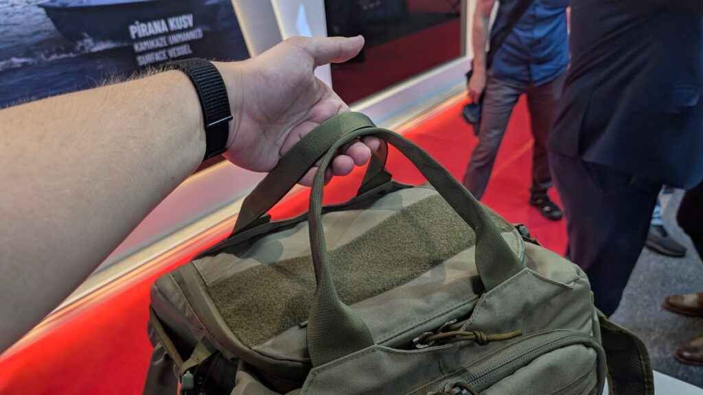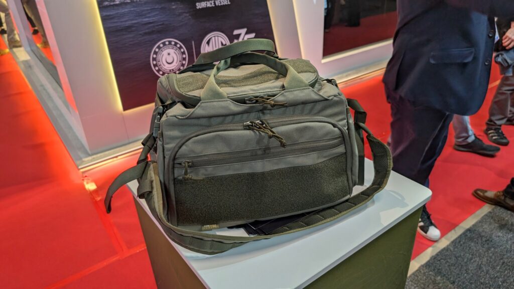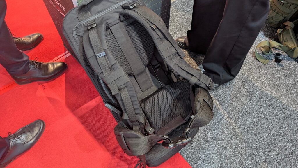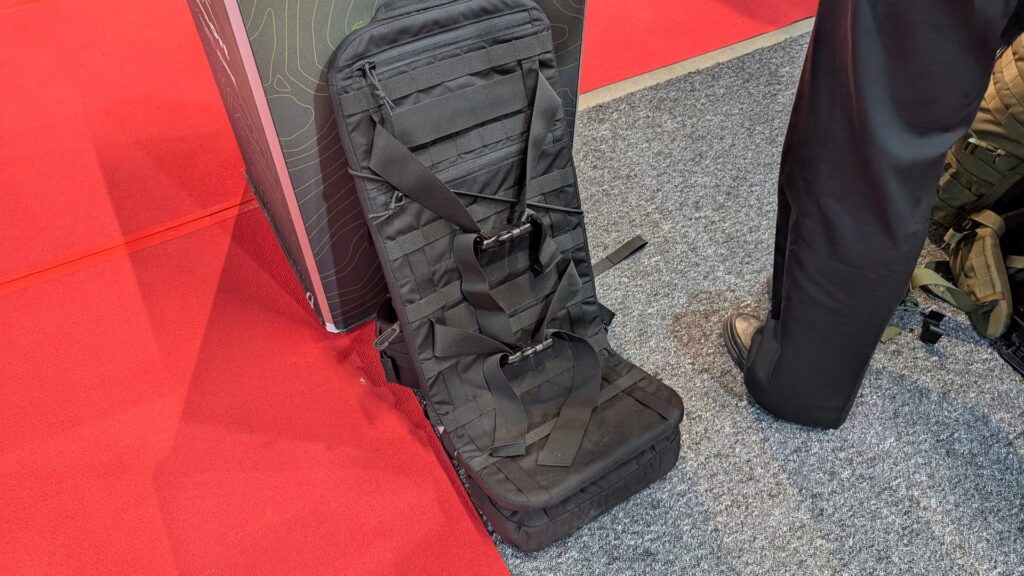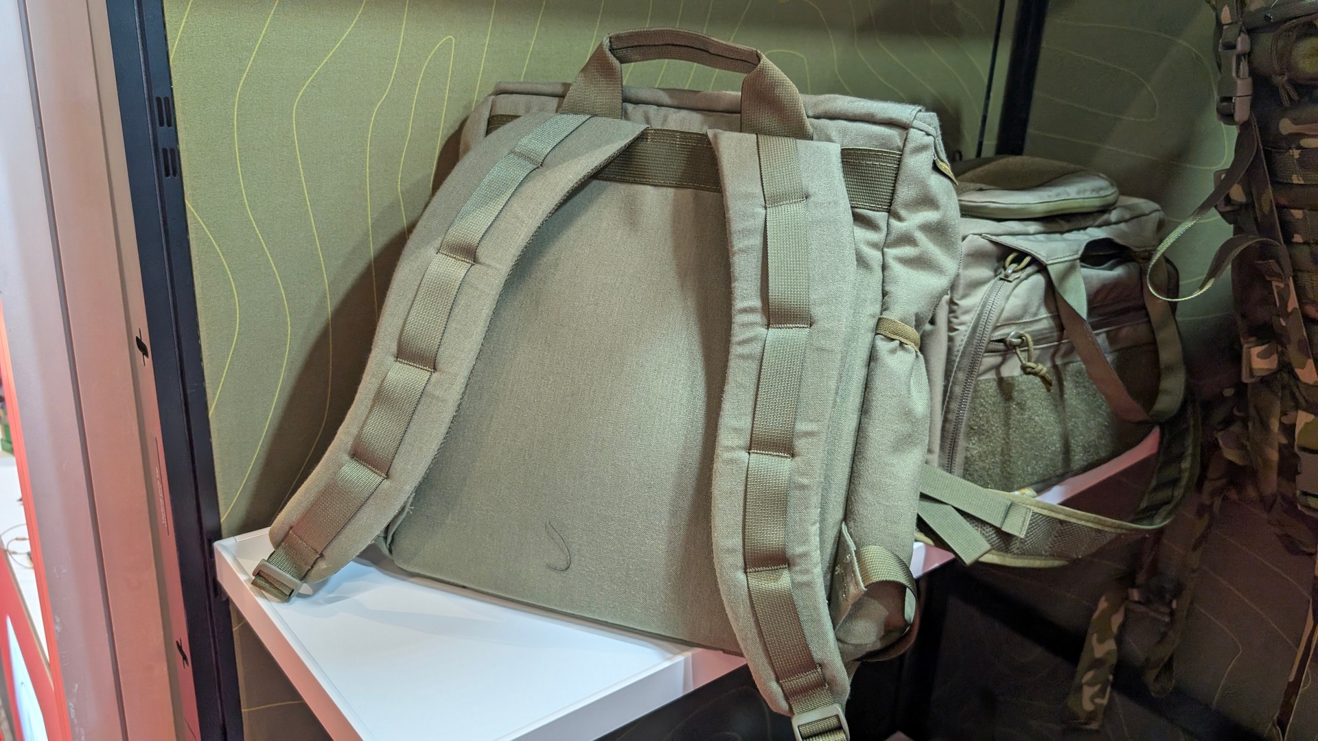 Kolejnym prezentowanym prototypem była z pozoru klasyczna torba na strzelnicę. Podobnych rozwiązań jest już trochę na rynku i nie widzę większego sensu opisywania całej torby – uchwyty transportowe, komora główna, zewnętrzne organizery. Jest jednak kilka charakterystycznych cech, które warto wyróżnić.