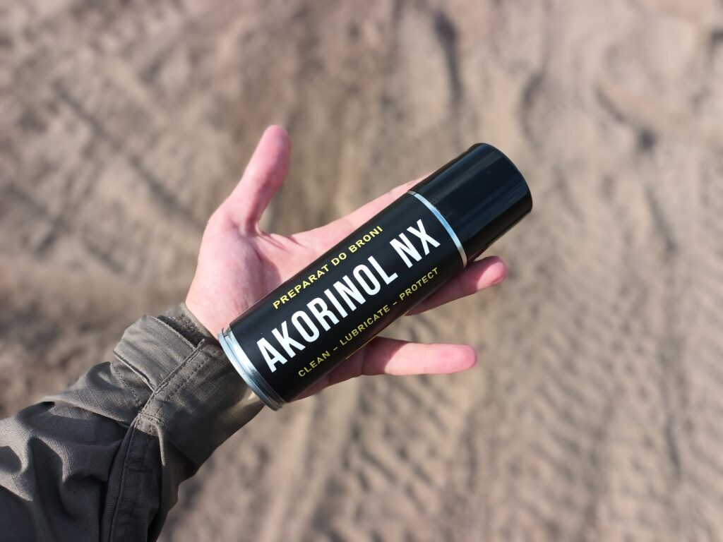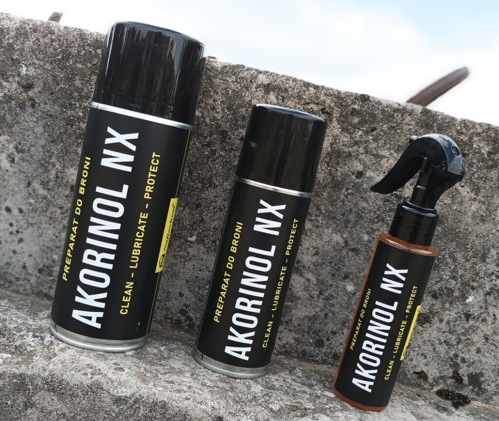 Akorinol NX to uniwersalny środek służący do czyszczenia, smarowania i konserwacji broni (Clean, Lubricate, Protect – CLP). Usuwając nawet kilkudniowe pozostałości po spalaniu gazów prochowych, pozostawiać ma cienką, suchą warstwę ochronną. Ta zapobiega przywieraniu zanieczyszczeń i wypiera wilgoć z powierzchni. Produkt ten wedle producenta ma być rozwiązaniem rewolucyjnym na polskim rynku.