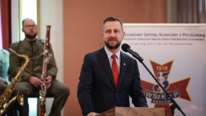Potrzebujemy medycyny pola walki, potrzebujemy Wojsk Medycznych, które zostały w tym roku powołane. Kraków jest siedzibą ich dowództwa, to ogromna odpowiedzialność i szansa. Pole walki się zmienia, a wojna w Ukrainie pokazuje, jak ważne są szybkie decyzje, nowoczesna medycyna i przygotowanie żołnierzy. Dlatego powstaje Legion Medyczny, do którego zapraszamy lekarzy, pielęgniarki, ratowników i wszystkich pracowników ochrony zdrowia, także cywilnych. Nie każdy musi składać przysięgę wojskową, ale każdy może służyć Ojczyźnie w czasie kryzysu. Zapraszam również do udziału w dobrowolnym szkoleniu obronnym. Ponad 15 tysięcy osób zgłosiło się w ciągu kilku dni. To cztery kursy: podstaw obronności, medyczny, cyberhigieny i przetrwania. Każdy może wybrać, w czym chce się doskonalić. Odtwarzamy także tradycję przedwojennych szkół podchorążych, również w Krakowie. Każdy student uczelni cywilnej, który zdecyduje się na taką ścieżkę, otrzyma stypendium 1000 zł miesięcznie przez 3 lata. To inwestycja w przyszłość, w edukację i służbę Ojczyźnie – mówił po spotkaniu z żołnierzami i pracownikami szpitala wicepremier Władysław Kosiniak-Kamysz.