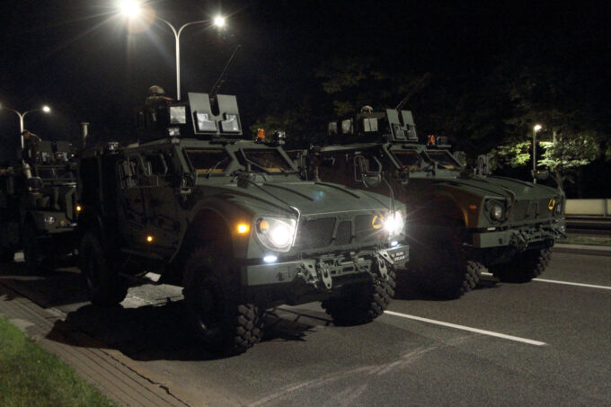Wśród pojazdów można było dostrzec także polskie wieloprowadnicowe wyrzutnie rakietowe M142 HIMARS (Homar-A).
