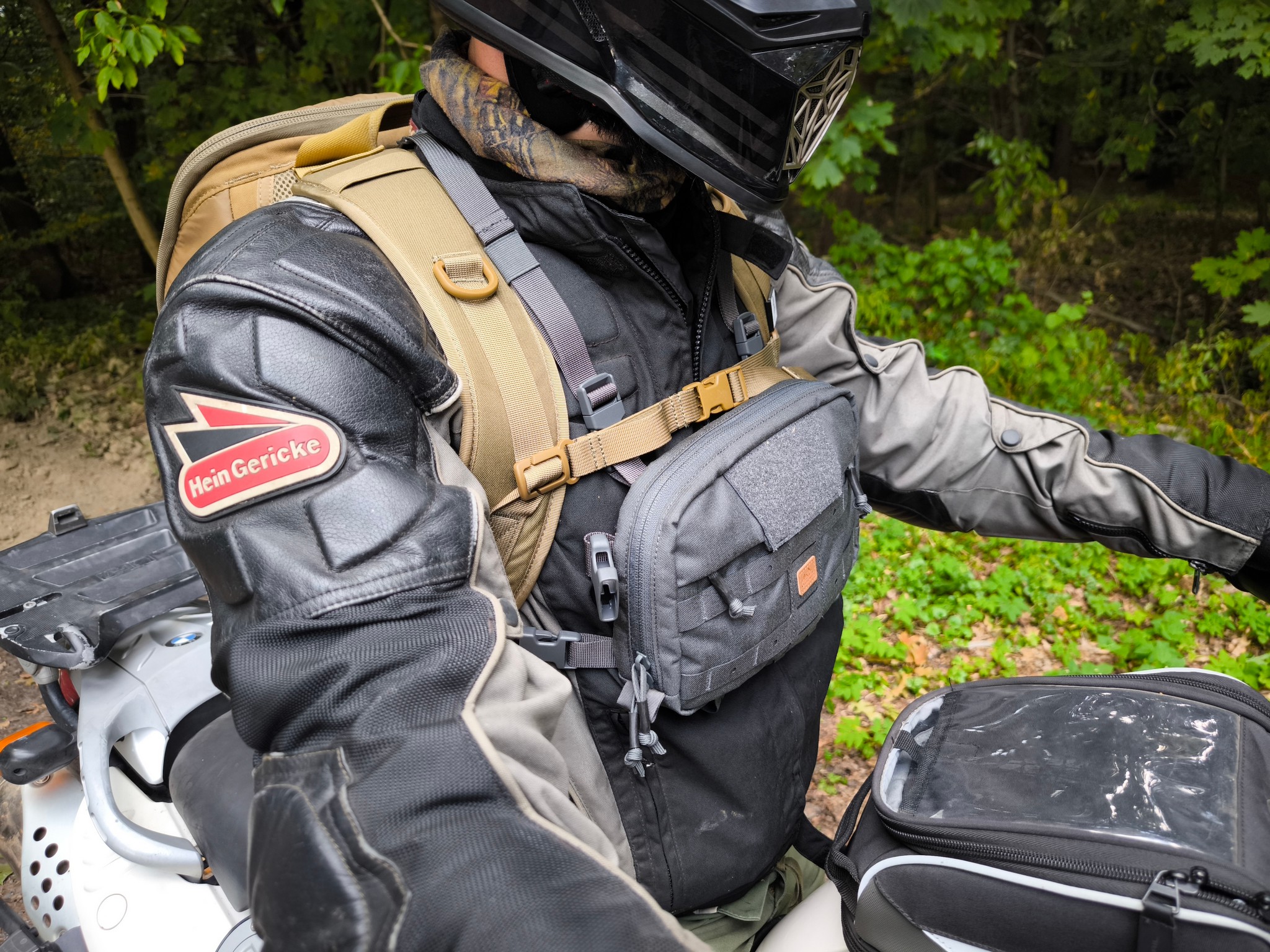 Chestpack świetnie sprawdza się za kierownicą, bez względu czy prowadzimy rower, motocykl czy quada albo samochód. W takich sytuacjach zapewni bezproblemowy dostęp do niezbędnika.