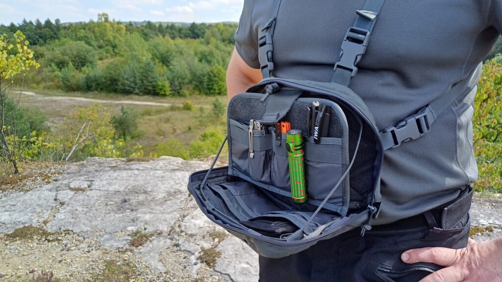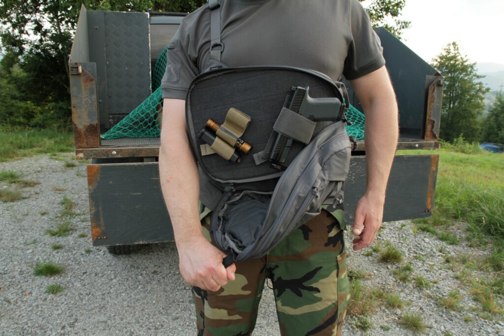 Są sytuacje, kiedy z powodzeniem można pozwolić sobie na bardziej niecodzienne sposoby noszenia broni i całego EDC. Takim rozwiązaniem jest chest-pack noszony bądź to jako niezależny element wyposażenia (na własnej uprzęży) lub wpięty w szelki plecaka (o ile jego konstrukcja nam to umożliwia).