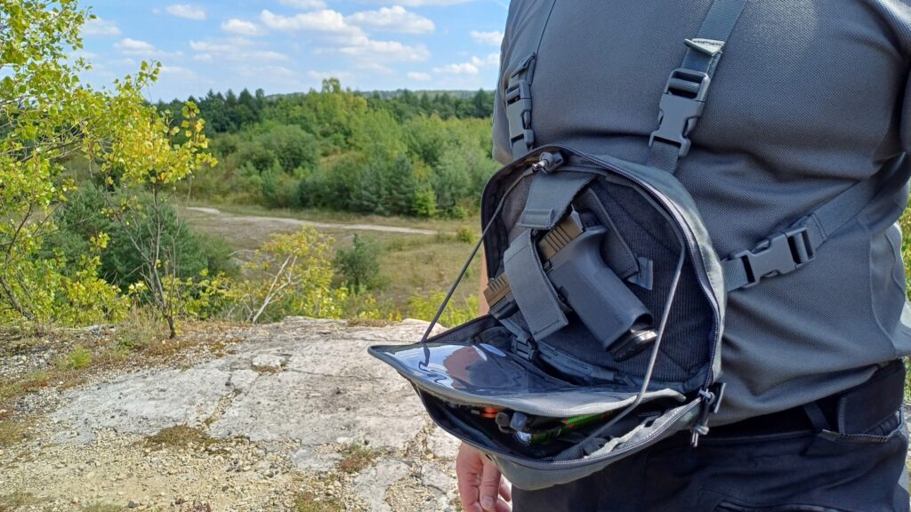 Dobrze skonstruowany i zapakowany chest-pack pozwala skryte przechowywanie broni nawet jeśli akurat jest otwarty i korzystamy z innych znajdujących się w nim przedmiotów.