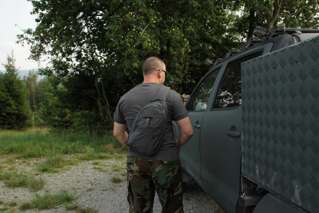 Dzięki temu w obozowisku czy w czasie odpoczynku pozbywamy się ciężkiego garbu, a esencjonalne z naszego punktu widzenia przedmioty pozostają przy nas w płaskim niewielkim organizerze. Dobywanie zaś broni w taki sposób przenoszonej jest równie szybkie jak z Kydexowej kabury umieszczonej na plate-carrierze. Jednocześnie dobrze jest ona ukryta przed wzrokiem i lepkimi łapkami osób niepowołanych.