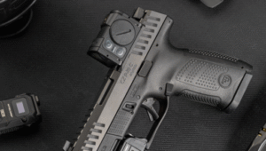 Nowy, kompaktowy pistolet czeskiego producenta opiera się na sprawdzonych rozwiązaniach serii CZ P-10 i zapewnia nowy poziom szybkości i dokładności strzelania dzięki wyżej wspomnianemu zintegrowanemu kompensatorowi i kutej na zimno lufie (Kolejne P-10C dla SG).