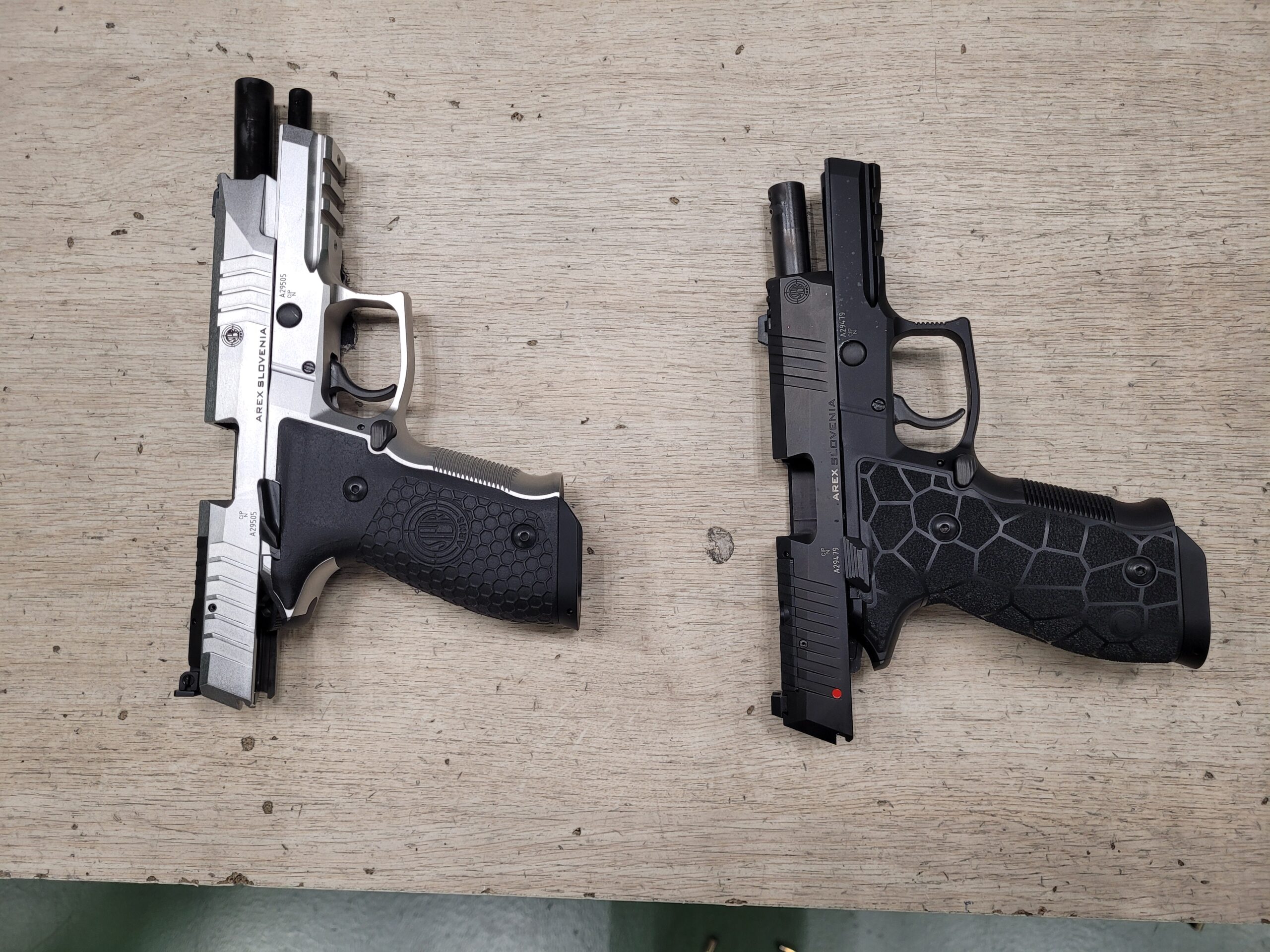 Oba pistolety wyposażono w spust SAO. Siła na języku spustowym w obu przypadkach wynosi 14 N, ale największe wrażenie robi reset spustu, który wynosi 1,5 mm. Mechanizm spustowy można wymienić na mechanizm SA/DA. Do tego, w ramach dostosowania ergonomii pistoletów dostępne są trzy wymienne proste języki spustowe, które mają różne położenie osi obrotu, co pozwala regulować położenie języka spustowego o 3 mm do przodu lub do tyłu. Do tego oczywiście dostępne są trzy sprężyny mechanizmu spustowego i powrotne o różnej sztywności.