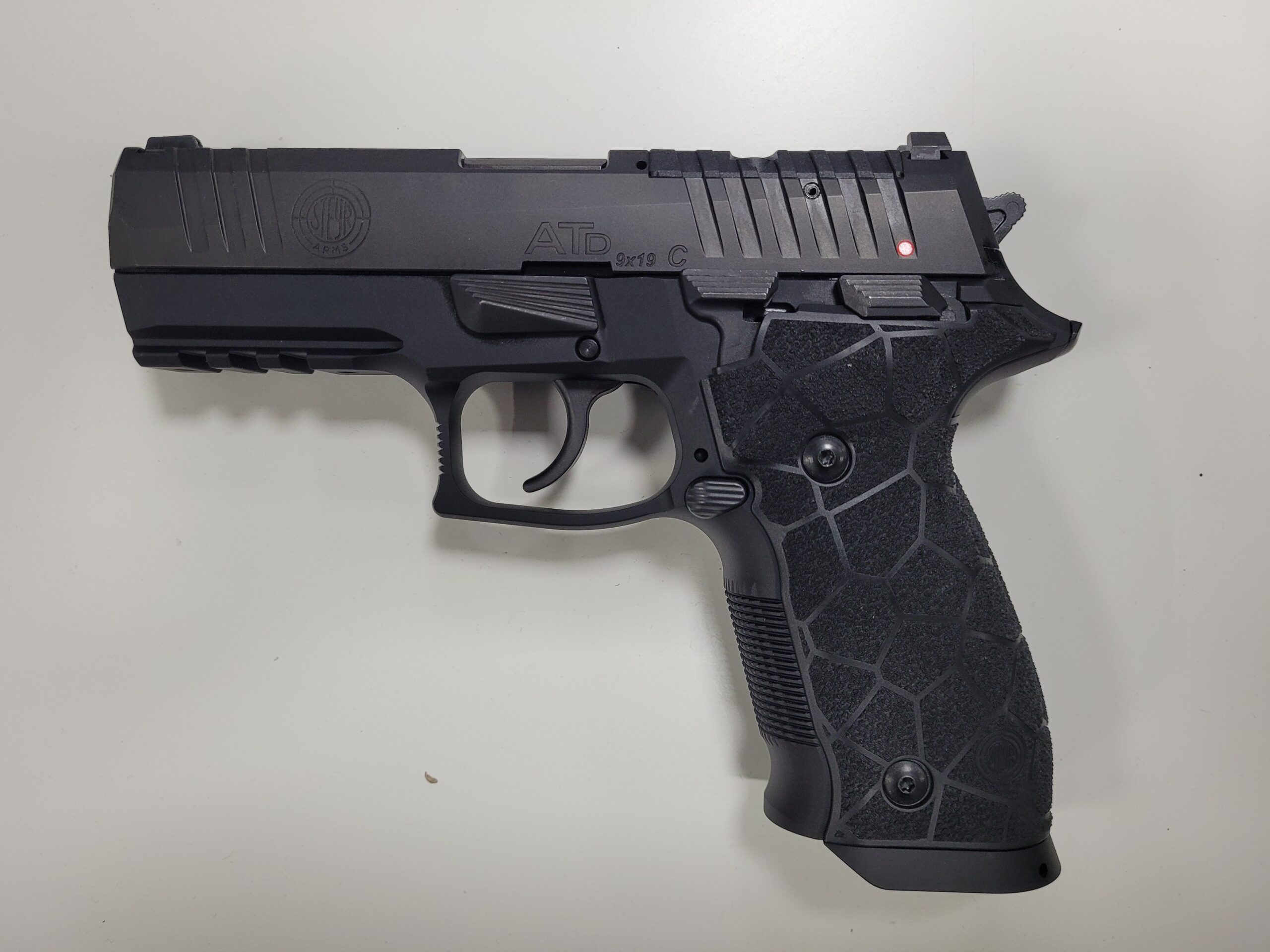 Zacznijmy od wersji ATC Bacis, która najbardziej przypomina konstrukcyjnie wersje ATD. Pistolet ma pełny stalowy zamek, co sprawia, że jego masa wraz z 18-nabojowym magazynkiem wynosi 1228 g. System spustowy SA/DA, zakrzywiony język spustowy o sile 17 N przy kurku napiętym i 42 N przy kurku nienapiętym. Jego reset wynosi 2,5 mm, czyli o połowę mniej niż w wersji ATD. Producent podkreśla ścisłe tolerancje przy produkcji pistoletów tej serii. Dzięki temu pistolet uzyskuje dużą precyzję, którą producent gwarantuje na poziomie 50 mm plus kaliber na dystansie 25 m, przy standardowej amunicji. Przyrządy celownicze są regulowane, a muszka ma białą kropkę ułatwiającą celowania.