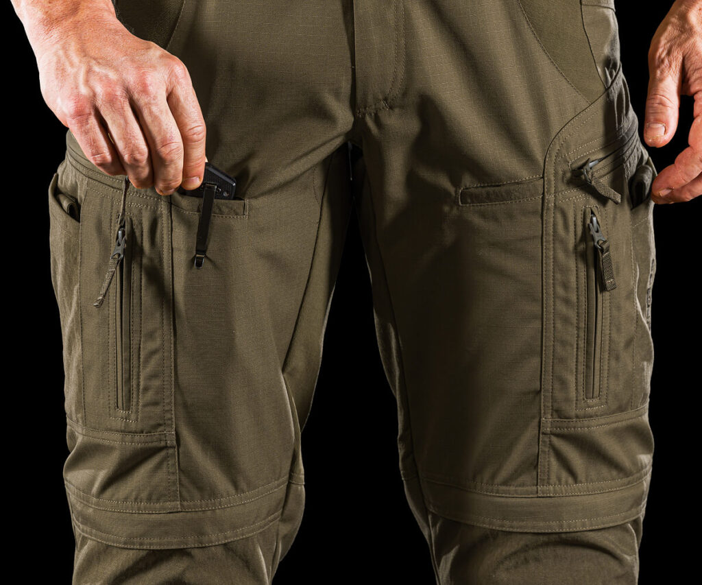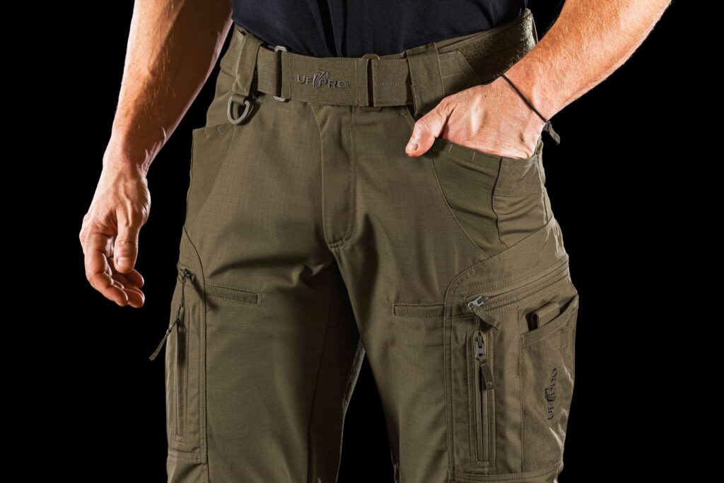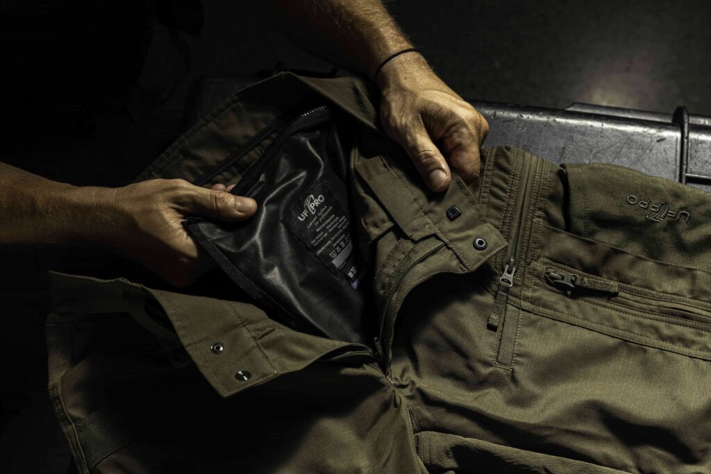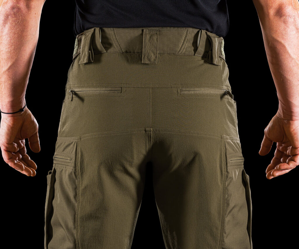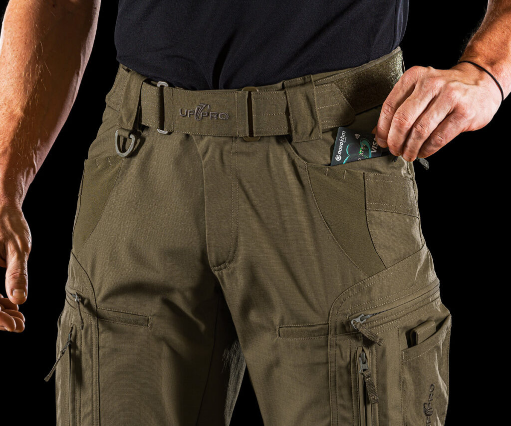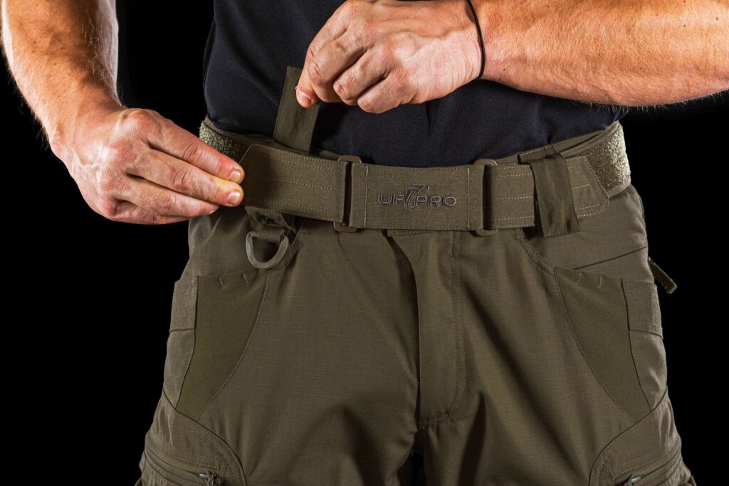Jedną z kluczowych cech większości spodni UF PRO jest pas stworzony w systemie Waist/Flex. Odpowiednie ukształtowanie w połączeniu z rozciągliwymi wstawkami zapewniać ma dokładne dopasowanie spodni do ciała. Specjalna miękka wstawka z tyłu zapewnia wygodę przy dolnym odcinku pleców.