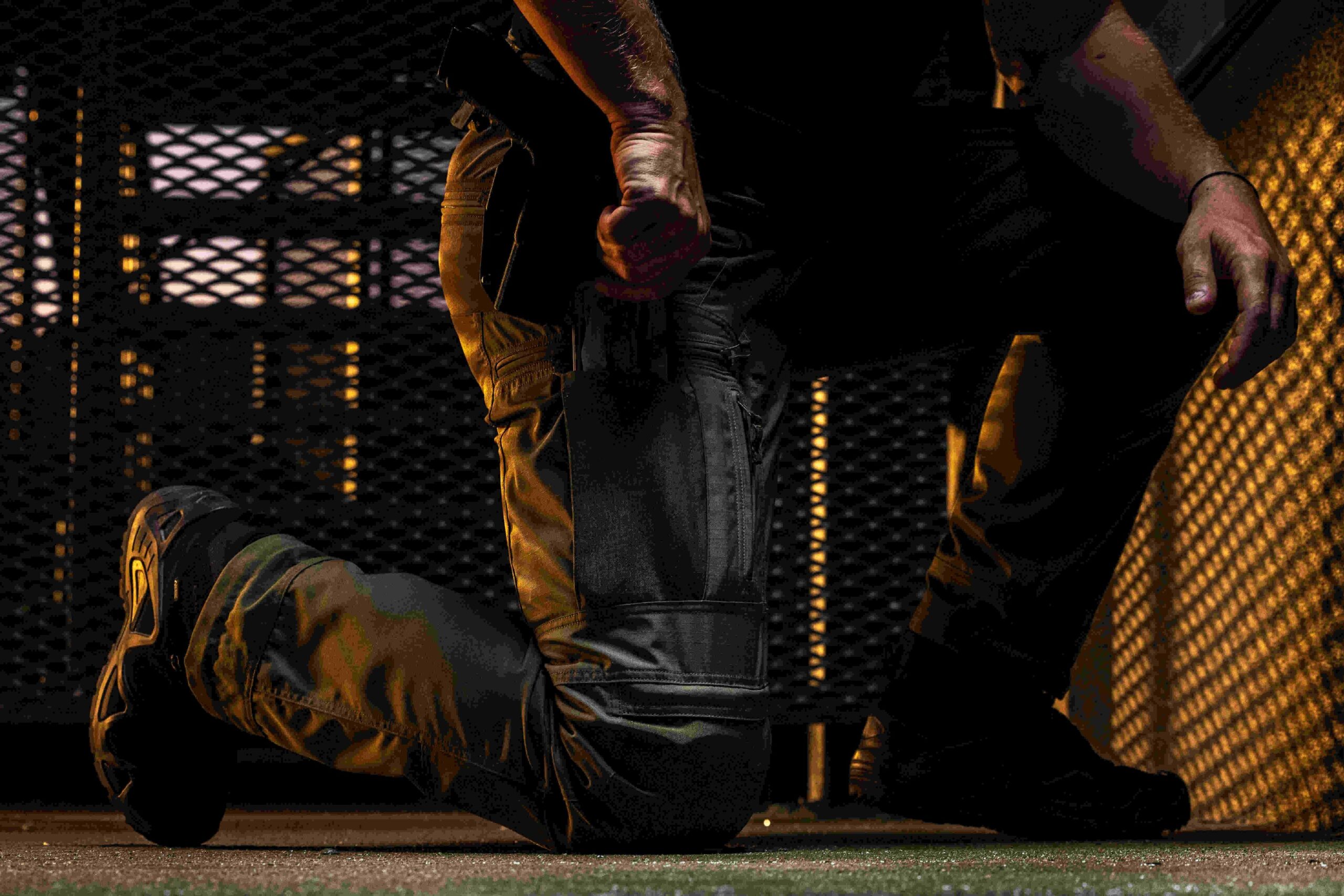 Pierwszą linię ochrony kolan stanowi wstawka z materiału CORDURA. Zgodnie z preferencjami użytkownika, ochrona kolan może zostać zwiększona o miękkie wkładki UF PRO 3D Knee Pads. Do działań w terenie o zwiększonym ryzyku, wkładki 3D Knee Pads mogą zostać połączone ze sztywnymi ochronnikami UF PRO Solid Pads dla ochrony przez przebiciem – np. przez śruby, gwoździe, igły czy potłuczone szkło.