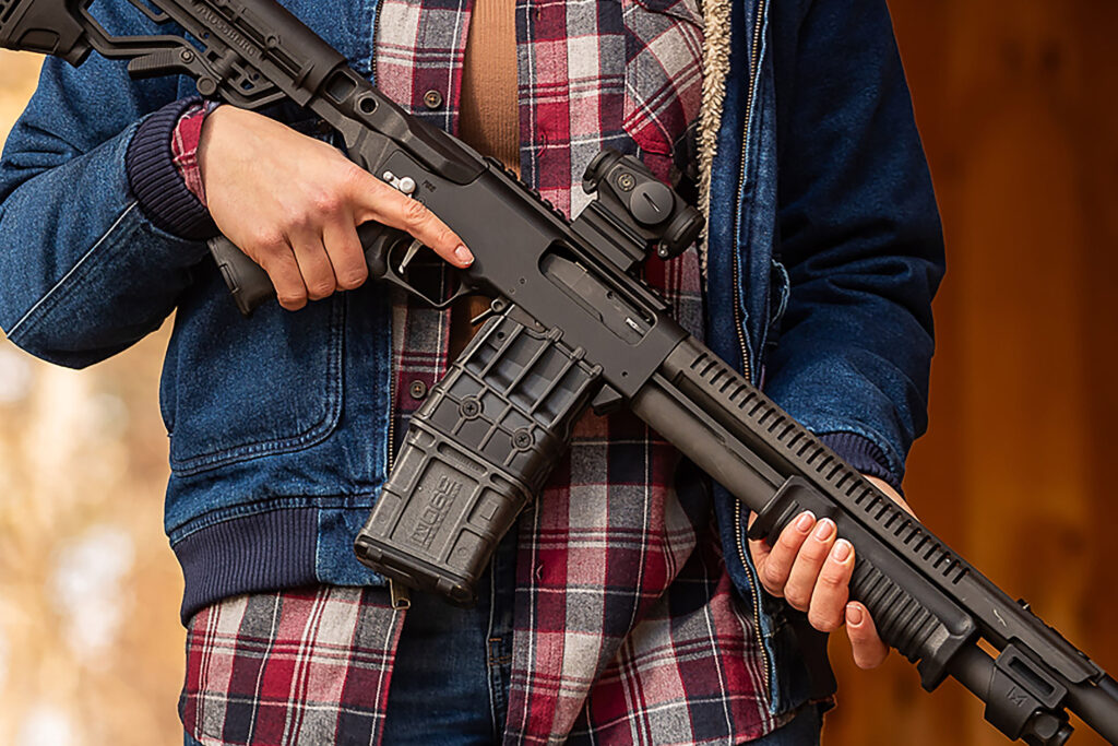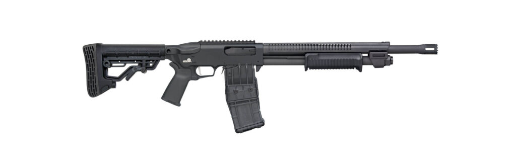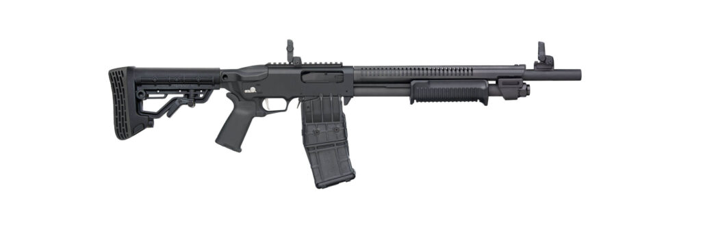 Dla zwolenników jeszcze szybszego przeładowania stworzono 590RM, zasilany z wymiennego, 10-nabojowego magazynka pudełkowego.