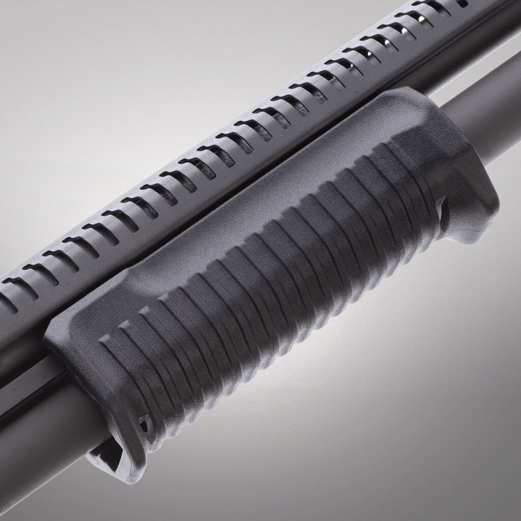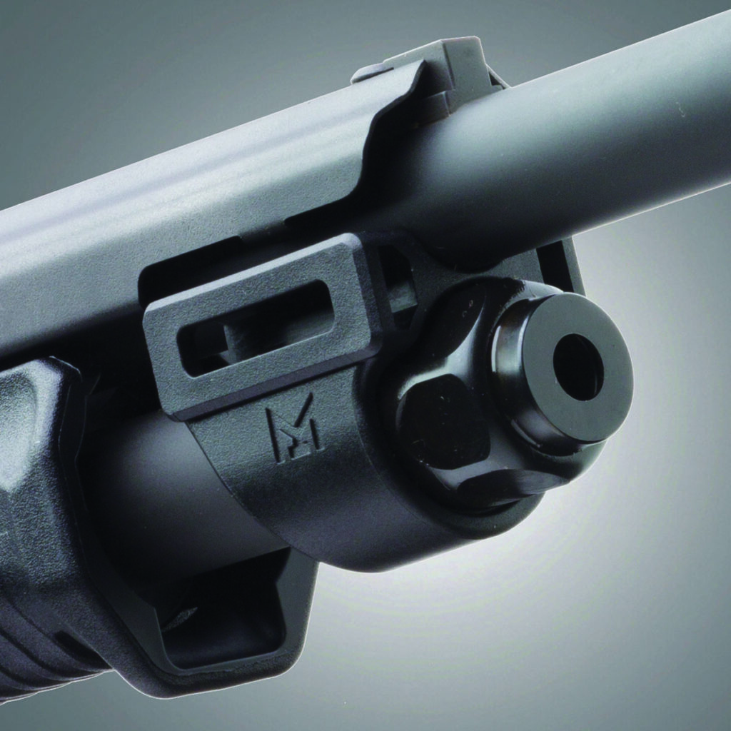 W modelu 590R (magazynek rurowy) wygładzono krawędzie okna ładowania – popularna modyfikacja zarówno wśród strzelb sportowych jak i tych o przeznaczeniuu policyjnym/wojskowym.