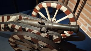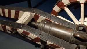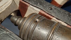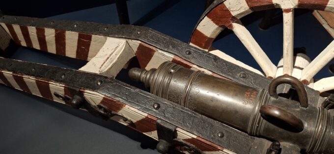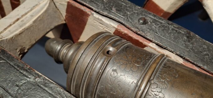Trzy kolejne zdjęcia, przedstawiają widok ogólny oraz szczegół budowy armaty. Chodzi oczywiście o „zapał”, czyli otwór, do którego przytyka się lont, aby odpalić ładunek miotający w lufie działa. Armatka znajduje się w zbiorach Muzeum Narodowego w Krakowie. Fot: praca własna