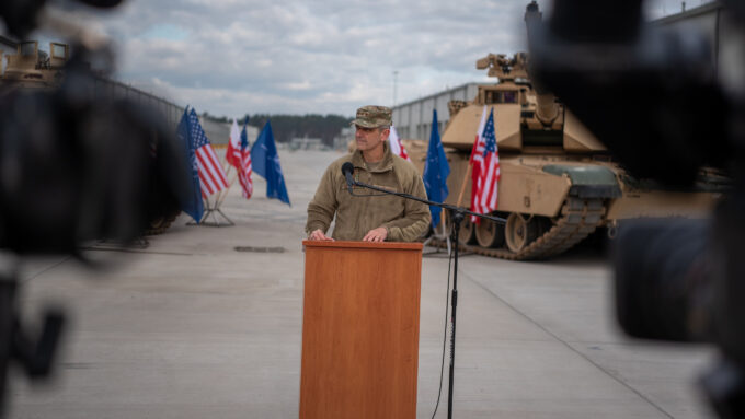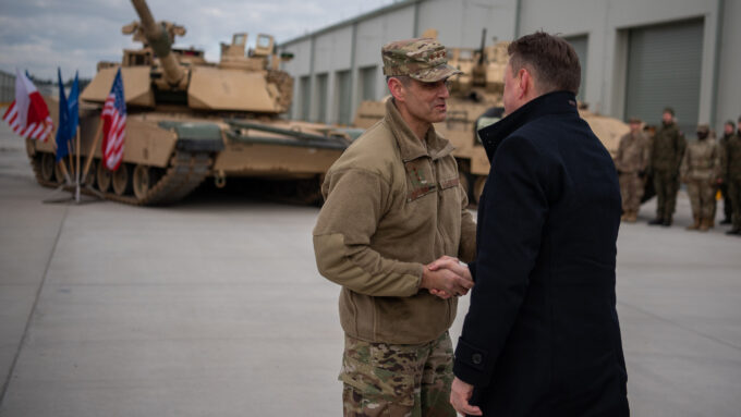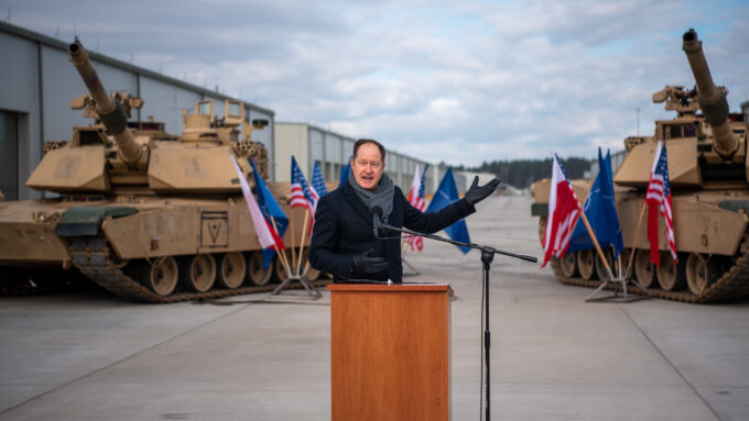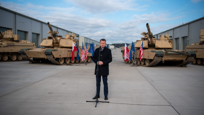 Za mną pokazany jest sprzęt Stanów Zjednoczonych, ale Wojsko Polskie też jest wyposażane w taki sam sprzęt. To jest zasada, której przestrzegamy. Wybieramy sprzęt najlepszy, sprawdzony w boju. Sprzęt amerykański dlatego, że chcemy budować interoperacyjność z siłami USA. Polskie Abramsy już niedługo, bo jeszcze w tym roku, trafią na wyposażenie Wojska Polskiego. Co do zasady naszym celem jest to, żeby interoperacyjność między siłami Stanów Zjednoczonych i polskimi siłami zbrojnymi była jak największa – dodał szef MON.