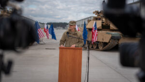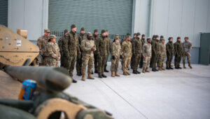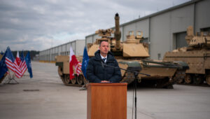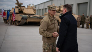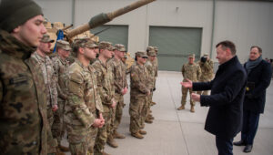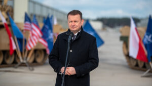 Za mną pokazany jest sprzęt Stanów Zjednoczonych, ale Wojsko Polskie też jest wyposażane w taki sam sprzęt. To jest zasada, której przestrzegamy. Wybieramy sprzęt najlepszy, sprawdzony w boju. Sprzęt amerykański dlatego, że chcemy budować interoperacyjność z siłami USA. Polskie Abramsy już niedługo, bo jeszcze w tym roku, trafią na wyposażenie Wojska Polskiego. Co do zasady naszym celem jest to, żeby interoperacyjność między siłami Stanów Zjednoczonych i polskimi siłami zbrojnymi była jak największa – dodał szef MON.
