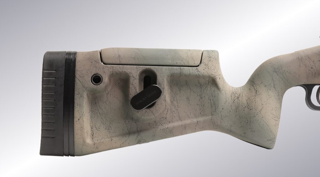Mechanizm spustowy to regulowany przez użytkownika Accutrigger, magazynek z kolei – 3 nabojowy wariant pudełkowy w standardzie AICS.