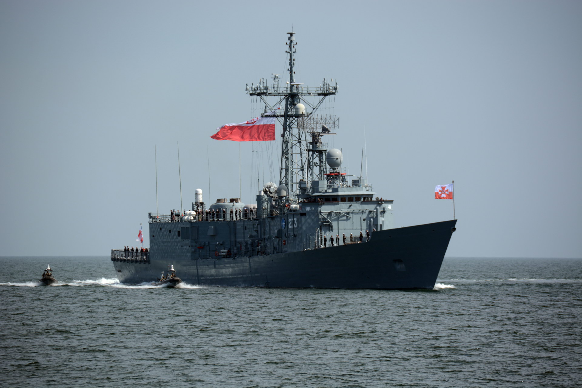 Za nim podążały dwie kolumny jednostek nawodnych. Bardziej oddalona od brzegu grupowała jednostki o większym zanurzeniu, a otwierała ją fregata typu Oliver Hazard Perry ORP Gen. T. Kościuszko (273)