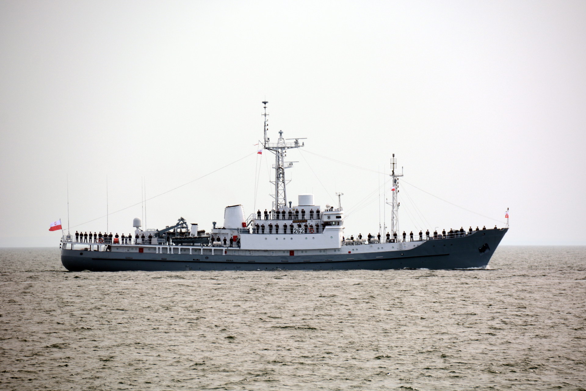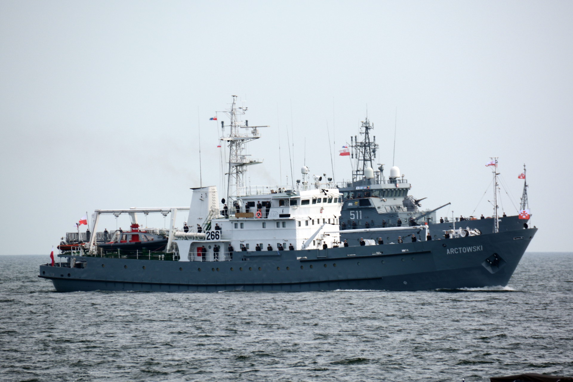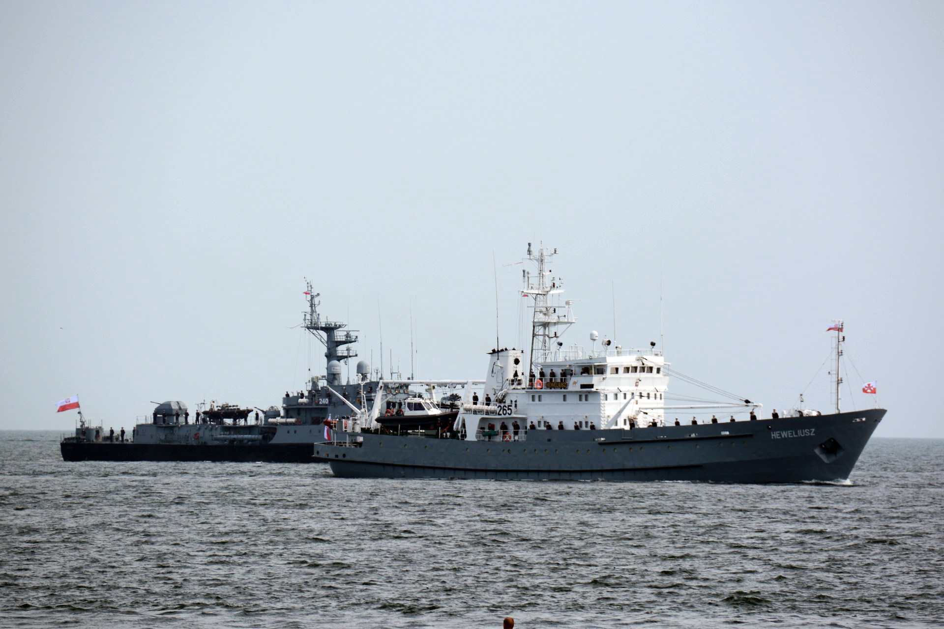 Za okrętami ratowniczymi projektu 570M ORP Piast (281) i ORP Lech (282) przeszedł okręt hydrograficzny projektu 874 ORP Heweliusz (265)