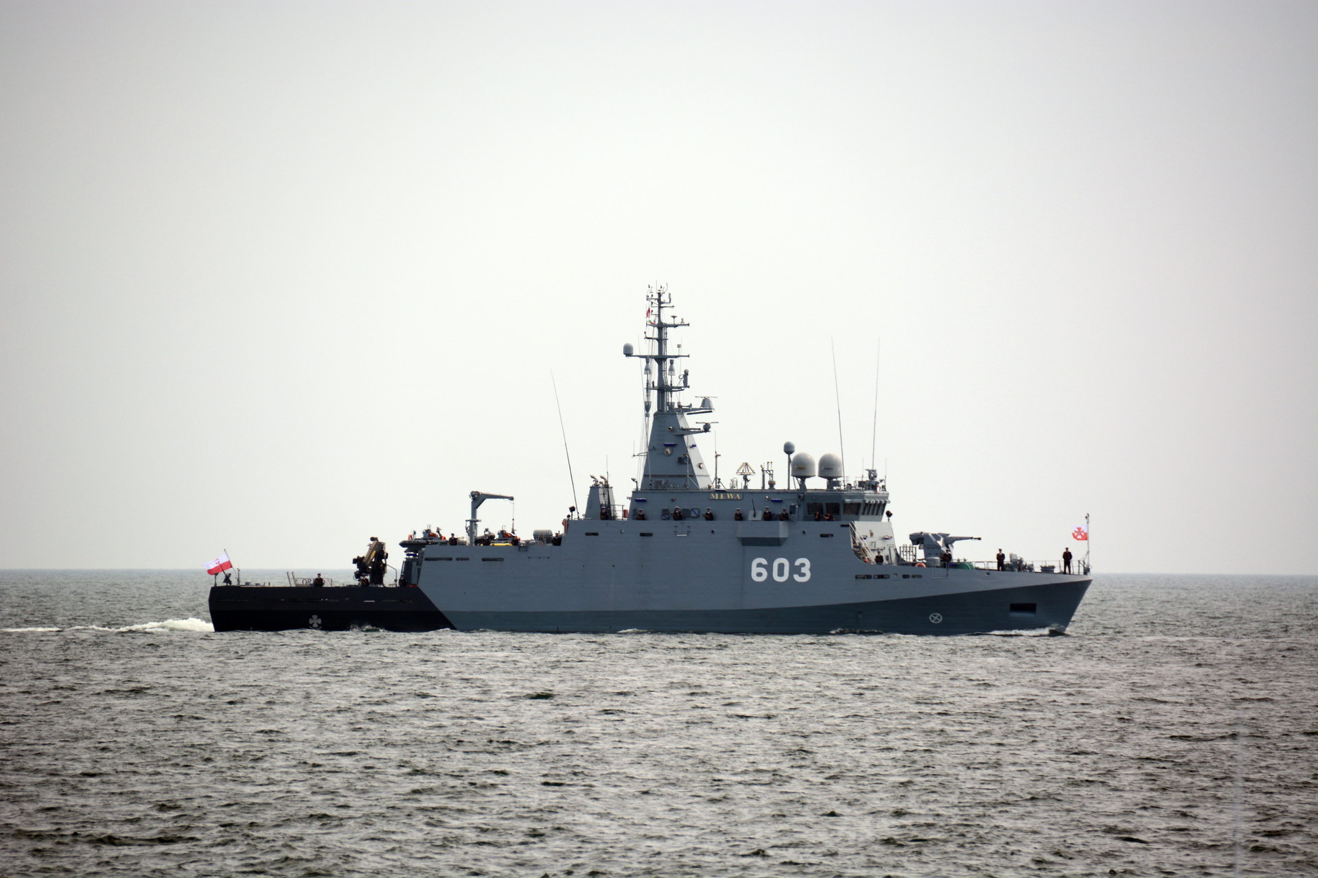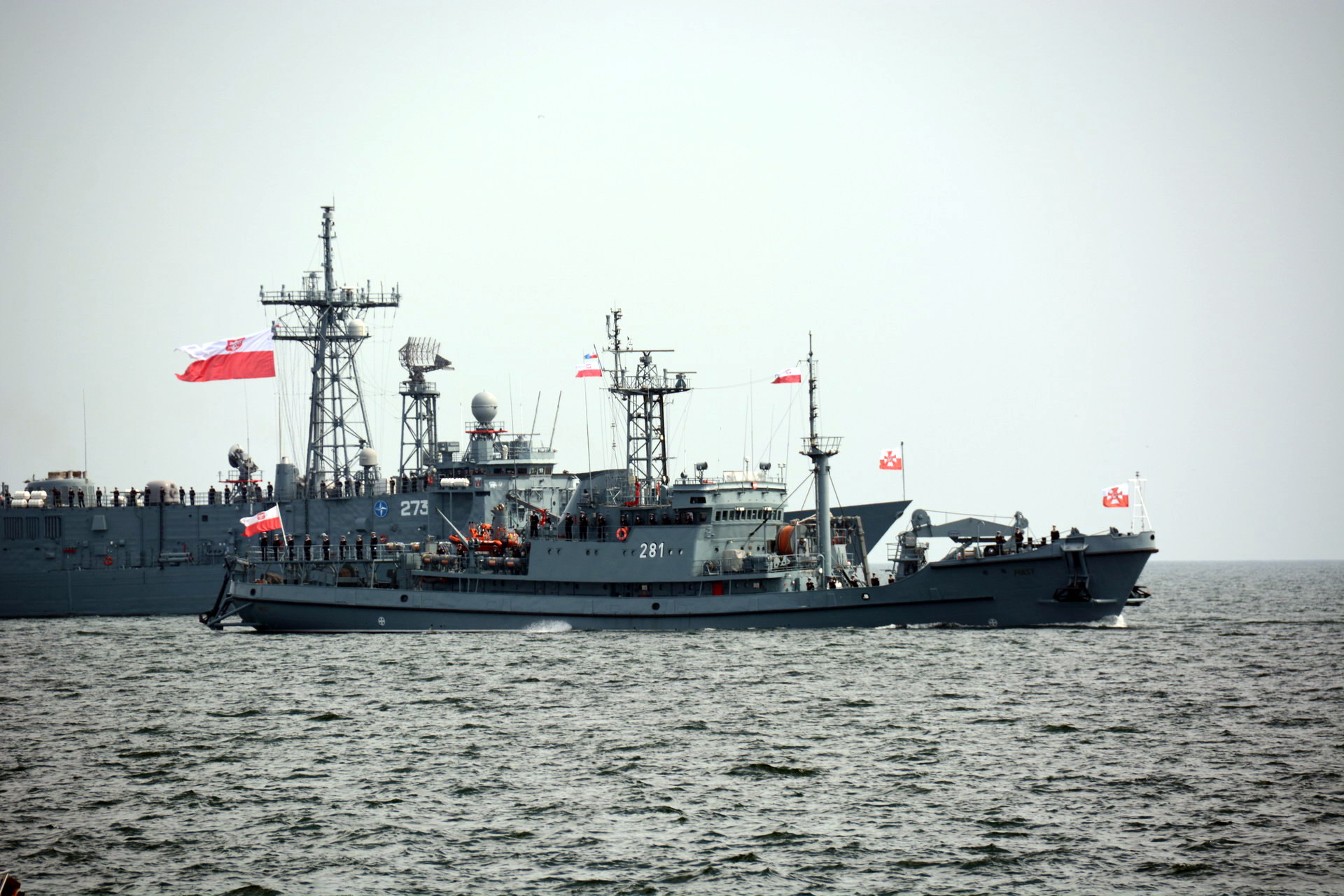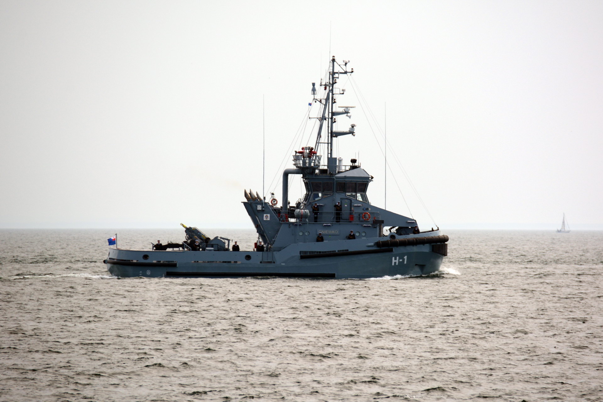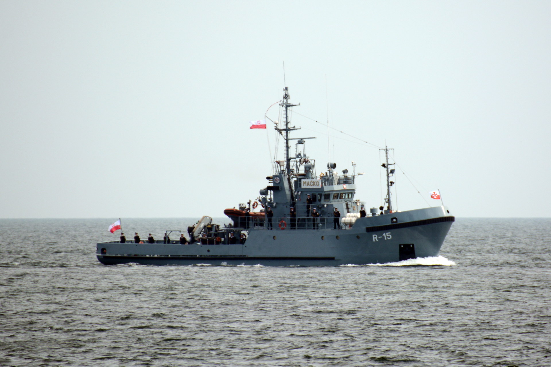 Za okrętami ratowniczymi projektu 570M ORP Piast (281) i ORP Lech (282) przeszedł okręt hydrograficzny projektu 874 ORP Heweliusz (265)