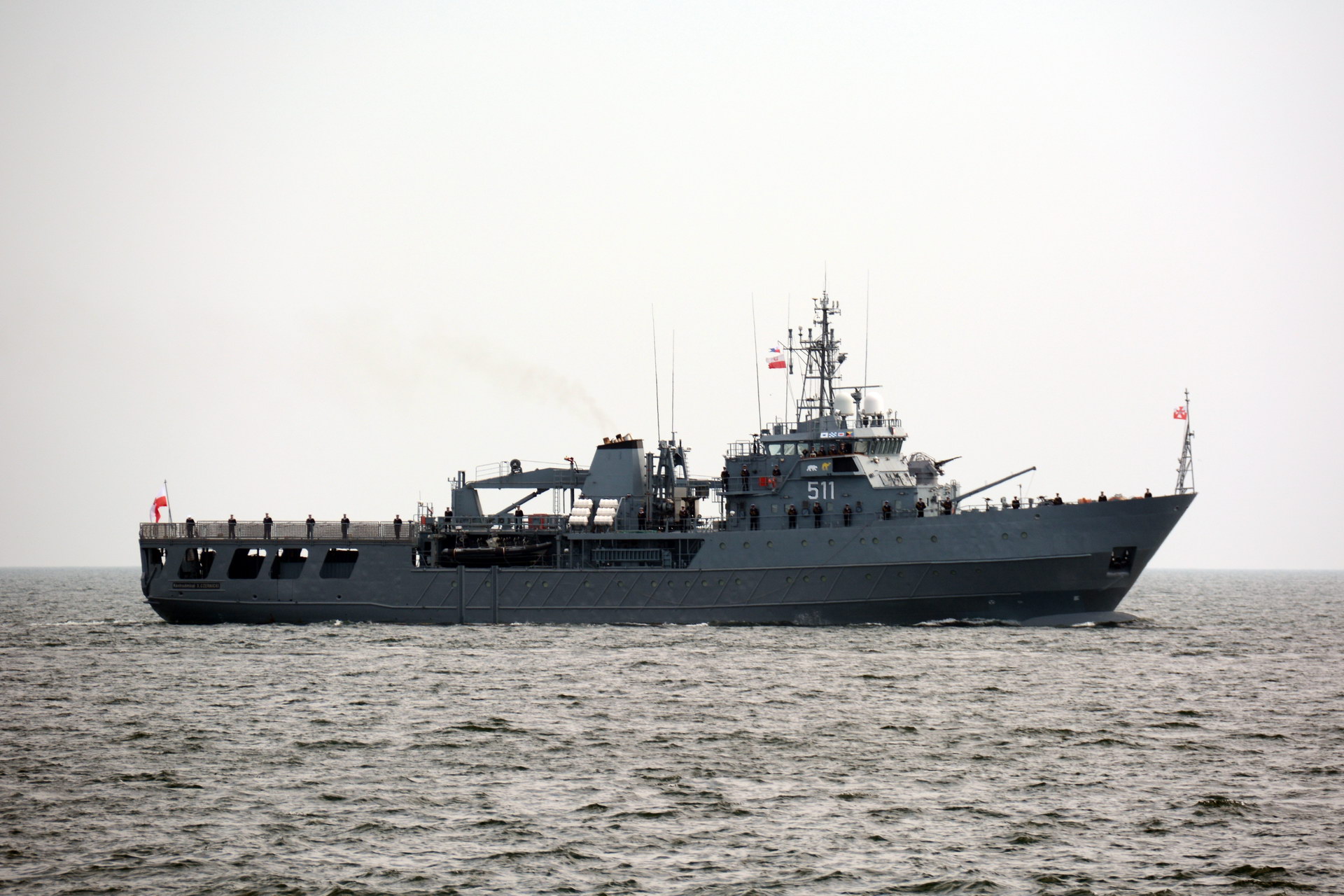 Drugą kolumnę, która przeszła bliżej brzegu, otwierał okręt ratowniczy projektu 570M ORP Piast (281)