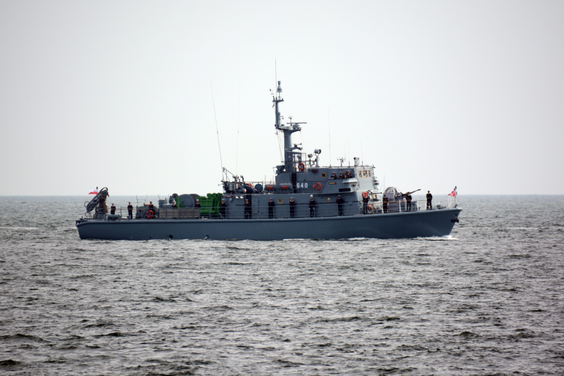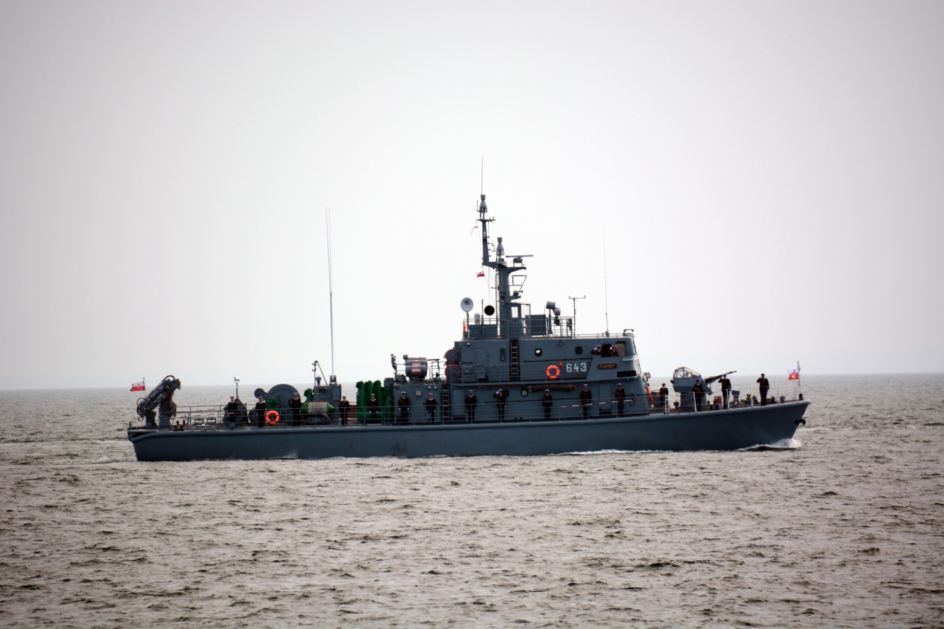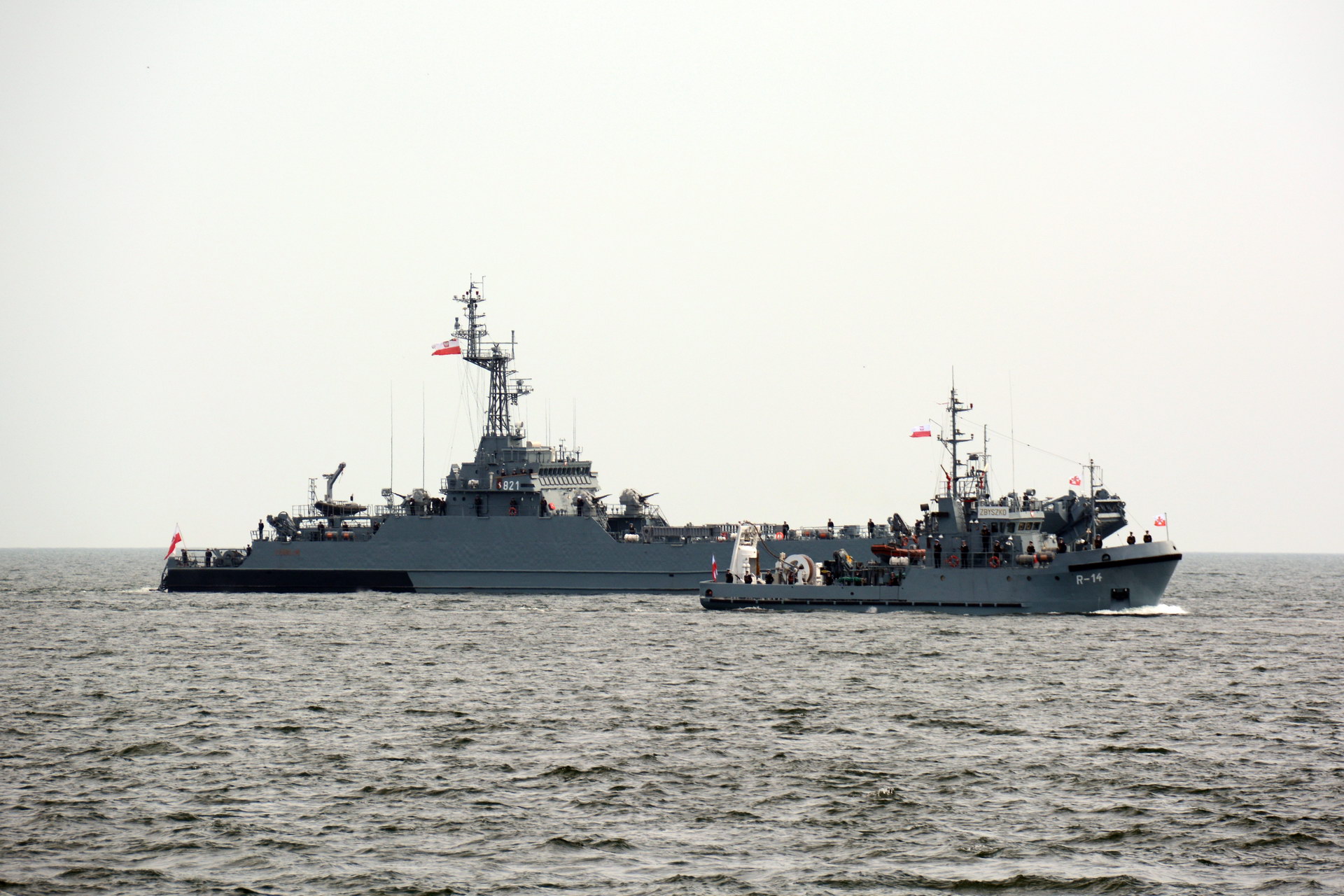 Za Dywizjonem Okrętów Bojowych miejsce w szyku zajęły przybyłe ze Świnoujścia okręt dowodzenia siłami obrony przeciwminowej projektu 130Z ORP Kontradmirał X. Czernicki (511)…
