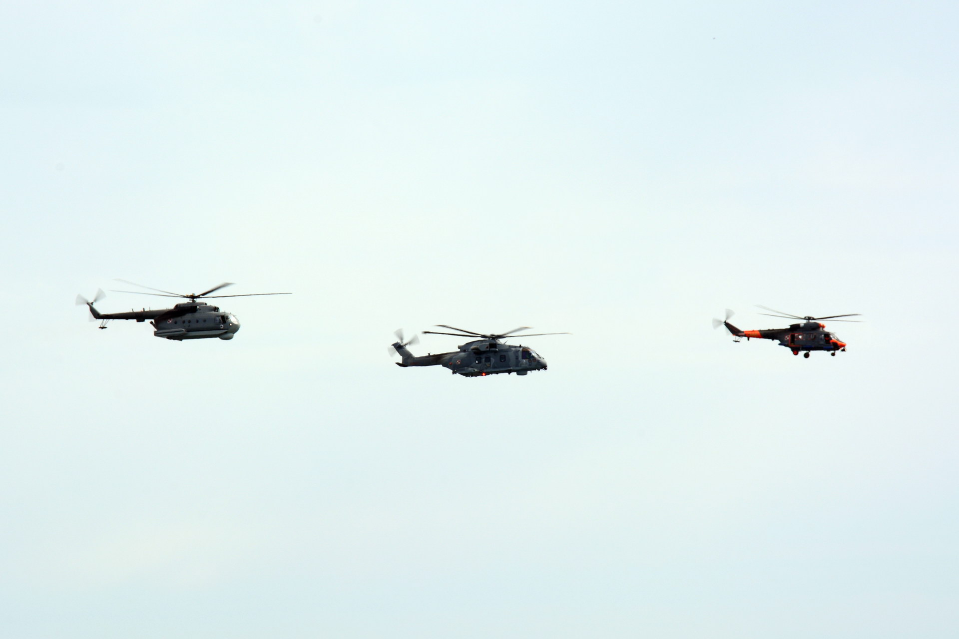 Nad zespołem jednostek pływających przeleciały statki powietrzne Brygady Lotnictwa Marynarki Wojennej w tym trzy śmigłowce: ratowniczy PZL W-3WARM Anakonda oraz przeznaczone do zwalczania okrętów podwodnych Mi-14PŁ oraz najnowszy nabytek lotników morskich w Darłowie AgustaWestland AW101 Merlin
