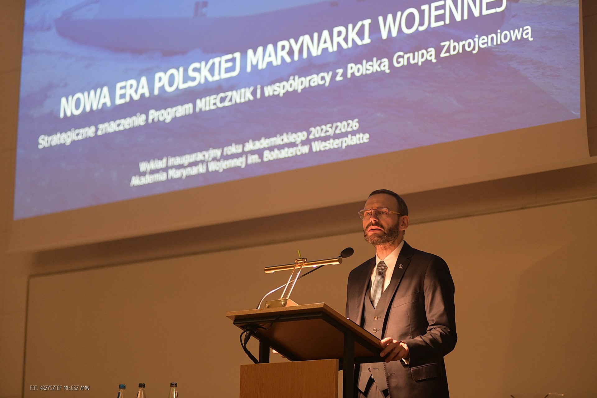 Zaszczyt wygłoszenia wykładu inauguracyjnego przypadł wiceprezesowi zarządu Polskiej Grupy Zbrojeniowej Janowi Grabowskiemu. Zwracając się do zebranych podkreślił on znaczenie Akademii Marynarki Wojennej dla bezpieczeństwa Polski.