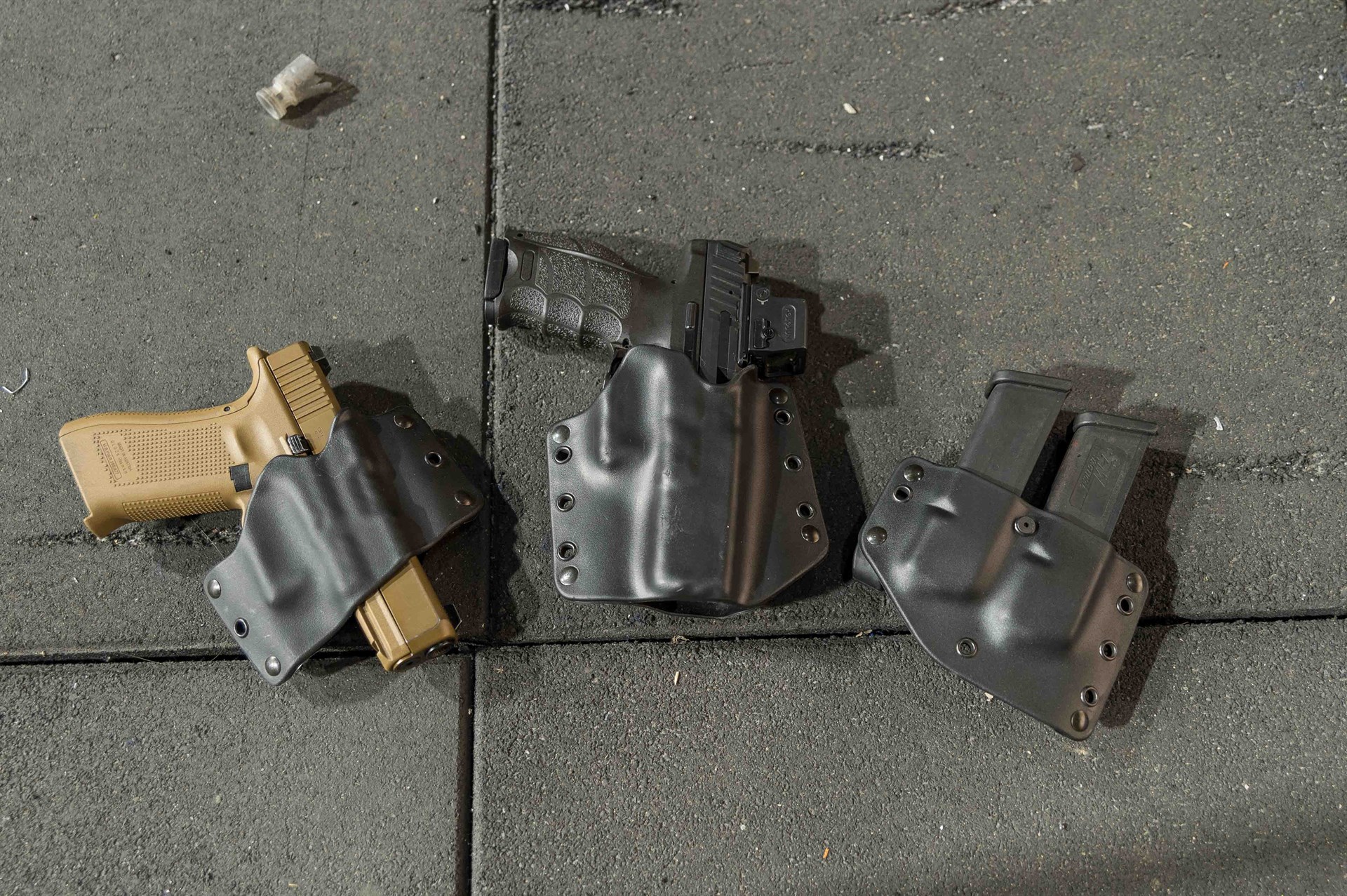 Producent postawił sobie za cel stworzenie uniwersalnej kabury. Przez kilka lat o rozpoczęcia produkcji, na stronie https://phalanxsystems.com/will-fit-list/ znaleźć można listę, której autorami są użytkownicy. Klienci dodają na niej swoje własne zdjęcia pokazujące ich prywatną broń w kaburach firmy. I trzeba przyznać ze lista jest naprawdę imponująca. Z pewną dozą ciekawości oczekiwaliśmy na weryfikację tych doniesień. Udało nam się to zrobić na kilku różnych pistoletach, do których mieliśmy dostęp, między innymi dzięki uprzejmości Cracow Shooting Academy. Stara maksyma „ufać, ale sprawdzać” znalazła zastosowanie i tutaj. Na zdjęciach obejrzyjcie jakie modele nam przyszło wypróbować w kaburach.