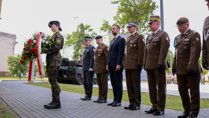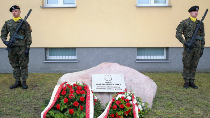 Żołnierze stąd pamiętają bardzo, chyba najbardziej w Polsce, bo zaraz po tym, jeszcze przed uroczystościami Święta Wojska Polskiego w ubiegłym roku, nadano imię jednemu z Abramsów – właśnie imię Mateusza Sitka. Jechał jako pierwszy na defiladzie 15 sierpnia w ubiegłym roku. Jest obelisk, przed którym przed chwilą złożyliśmy kwiaty. Pamiętają bardzo dobrze dowódcy. Pan pułkownik Skrzypczak, który pełni tę rolę od kilku miesięcy, pan generał Kozłowski, który był dowódcą Mateusza Sitka, sierżanta Mateusza Sitka, kiedy pełnił misję na granicy, kiedy oddał życie. Była rodzina, za co jej bardzo dziękuję. (…) Jak miałem okazję rozmawiać z rodziną, wspominaliśmy służbę sierżanta Mateusza Sitka, to wszystko, co jest jego dokonaniem. To jest wielka wdzięczność nas wszystkich, wszystkich Polaków, którą też po raz kolejny w imieniu państwa polskiego przekazałem. Wdzięczność kolegów i koleżanek służących w Wojsku Polskim, dowódców, przełożonych – mówił szef MON (Czołg M1A1FEP Abrams nazwany na cześć śp. sierżanta Mateusza Sitka).