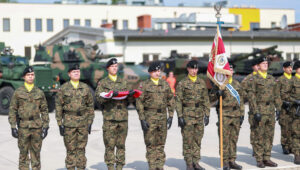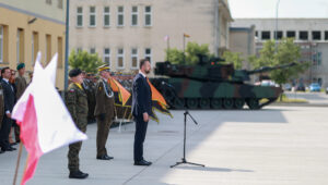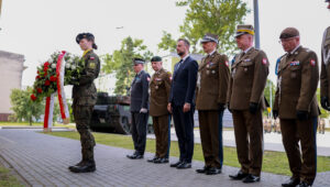 Żołnierze stąd pamiętają bardzo, chyba najbardziej w Polsce, bo zaraz po tym, jeszcze przed uroczystościami Święta Wojska Polskiego w ubiegłym roku, nadano imię jednemu z Abramsów – właśnie imię Mateusza Sitka. Jechał jako pierwszy na defiladzie 15 sierpnia w ubiegłym roku. Jest obelisk, przed którym przed chwilą złożyliśmy kwiaty. Pamiętają bardzo dobrze dowódcy. Pan pułkownik Skrzypczak, który pełni tę rolę od kilku miesięcy, pan generał Kozłowski, który był dowódcą Mateusza Sitka, sierżanta Mateusza Sitka, kiedy pełnił misję na granicy, kiedy oddał życie. Była rodzina, za co jej bardzo dziękuję. (…) Jak miałem okazję rozmawiać z rodziną, wspominaliśmy służbę sierżanta Mateusza Sitka, to wszystko, co jest jego dokonaniem. To jest wielka wdzięczność nas wszystkich, wszystkich Polaków, którą też po raz kolejny w imieniu państwa polskiego przekazałem. Wdzięczność kolegów i koleżanek służących w Wojsku Polskim, dowódców, przełożonych – mówił szef MON (Czołg M1A1FEP Abrams nazwany na cześć śp. sierżanta Mateusza Sitka).