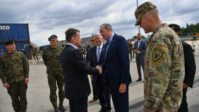 Zachowaliśmy wysokie tempo dostaw. Jest sprzęt i mamy już wyszkolonych żołnierzy. Dzięki temu Polska jest bezpieczna. Dzisiaj pokazujemy siłę sojuszu polsko – amerykańskiego, która służy bezpieczeństwu Polski, ale także całej wschodniej flanki Sojuszu Północnoatlantyckiego. Wspieramy Ukrainę, ale również, a może przede wszystkim, bo to jest moja misja jako ministra obrony narodowej, skoncentrowany jestem na wzmocnieniu Wojska Polskiego, tak żeby odstraszyć agresora we współpracy z naszym partnerem amerykańskim – mówił szef MON.
