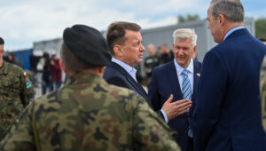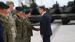 Zachowaliśmy wysokie tempo dostaw. Jest sprzęt i mamy już wyszkolonych żołnierzy. Dzięki temu Polska jest bezpieczna. Dzisiaj pokazujemy siłę sojuszu polsko – amerykańskiego, która służy bezpieczeństwu Polski, ale także całej wschodniej flanki Sojuszu Północnoatlantyckiego. Wspieramy Ukrainę, ale również, a może przede wszystkim, bo to jest moja misja jako ministra obrony narodowej, skoncentrowany jestem na wzmocnieniu Wojska Polskiego, tak żeby odstraszyć agresora we współpracy z naszym partnerem amerykańskim – mówił szef MON.