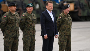 Przede wszystkim chciałbym podziękować mojemu odpowiednikowi z rządzie Stanów Zjednoczonych, sekretarzowi obrony USA Lloydowi Austinowi. Dzięki wsparciu ze strony sekretarza Austina zachowaliśmy tak wysokie tempo. Ostatnio, kiedy rozmawiałem z Lloydem Austinem, a było to w sobotę, rozmawialiśmy przede wszystkim na temat sytuacji w Rosji. na temat inwazji rosyjskiej na Ukrainę. Nie omieszkałem podziękować za to, że te czołgi są już dostarczane, bo przecież już wtedy zmierzały do Polski. Lloyd Austin powiedział wtedy, że z pewnością będziemy z tych czołgów zadowoleni. Ja wiem, że już jesteśmy zadowoleni dlatego, że rozmawiałem z naszymi czołgistami, którzy już zakończyli szkolenie na czołgach Abrams. A zakończyli takie szkolenie dlatego, że razem z US Army, razem z wojskami lądowymi Stanów Zjednoczonych zorganizowaliśmy „Akademię Abrams” i nasze załogi z 1 Warszawskiej Brygady Pancernej wchodzącej w skład 18 Dywizji Zmechanizowanej, odpowiedzialnej za bezpieczeństwo wschodniej Polski, już są przeszkolone. A więc zaraz przejmą te czołgi i trafią one na wyposażenie i będą stanowiły, rzeczywiście zaporę nie do przebicia. One zamkną „Bramę Brzeską”. Naszym zadaniem jest odstraszenie agresora. Spowodowanie tego, aby agresor nie wtargnął na ziemie polskie – mówił szef resortu obrony narodowej.