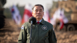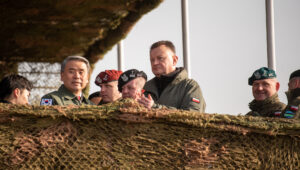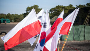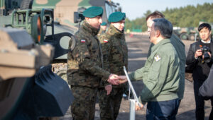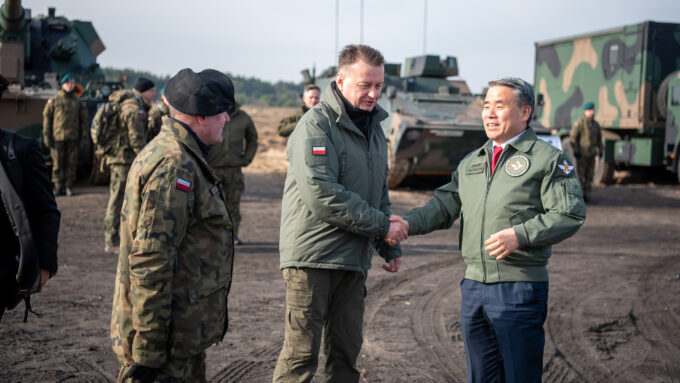 Jesteśmy w trakcie wzmacniania zdolności obronnych polskiego wojska poprzez współpracę z Koreą Południową, ale nasze plany dotyczą również budowania interoperacyjności pomiędzy naszymi siłami zbrojnymi, a więc jestem dobrej myśli, że również będziemy widzieć i podziwiać współpracę naszych żołnierzy na poligonach i również co jest niezwykle istotne, nasze wspólne plany dot. produkcji sprzętu koreańskiego w Polsce – mówił podczas spotkania z żołnierzami wicepremier Mariusz Błaszczak.