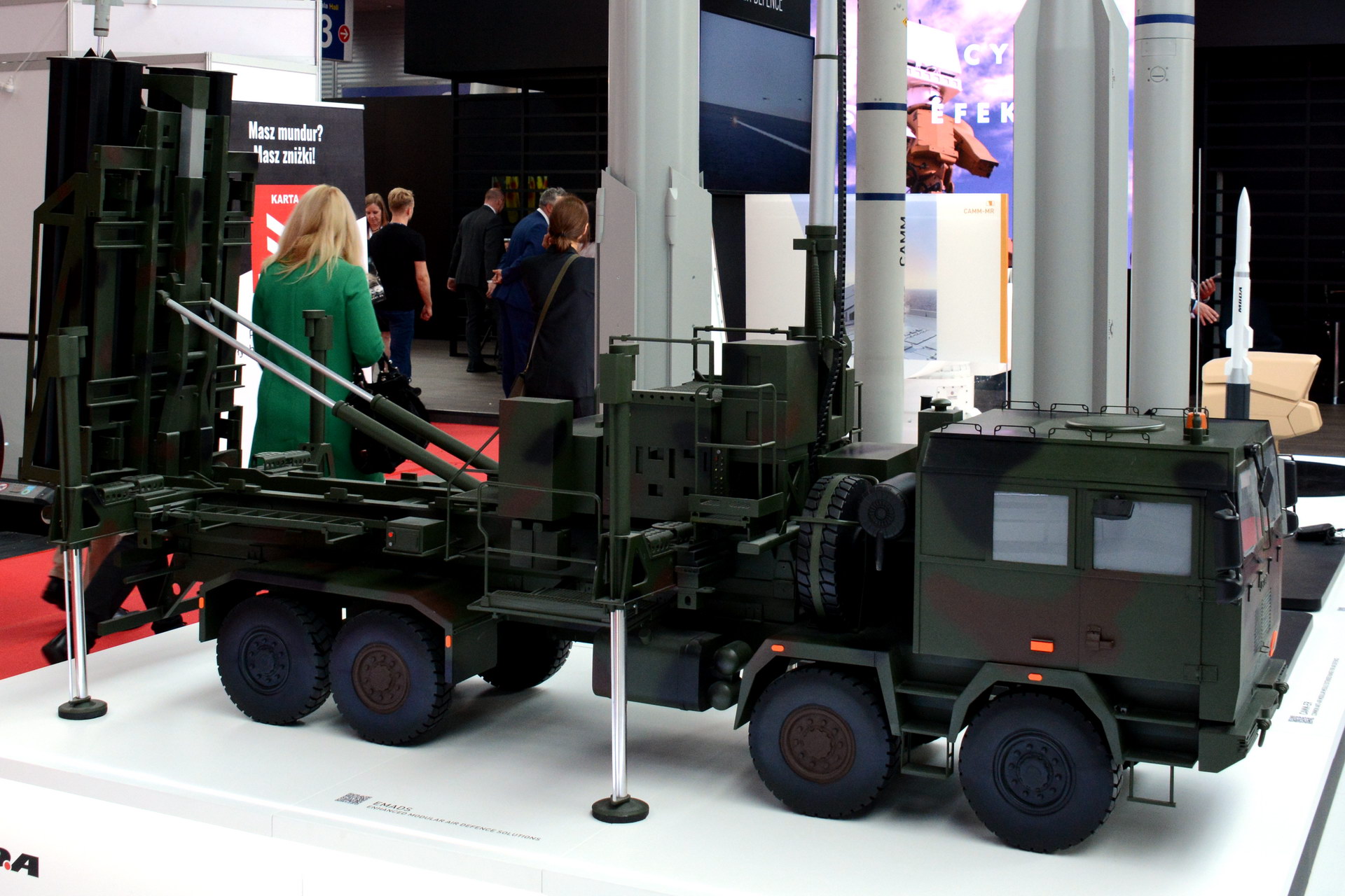 Rodzina pocisków CAMM na stoisku MBDA. Widoczny na pierwszym planie CAMM-MR dopiero powstanie. Obecnie znajduje się on na etapie uzgodnień międzypaństwowych pomiędzy Polską, Wielką Brytanią i Włochami / Zdjęcia: Przemysław Gurgurewicz, MILMAG