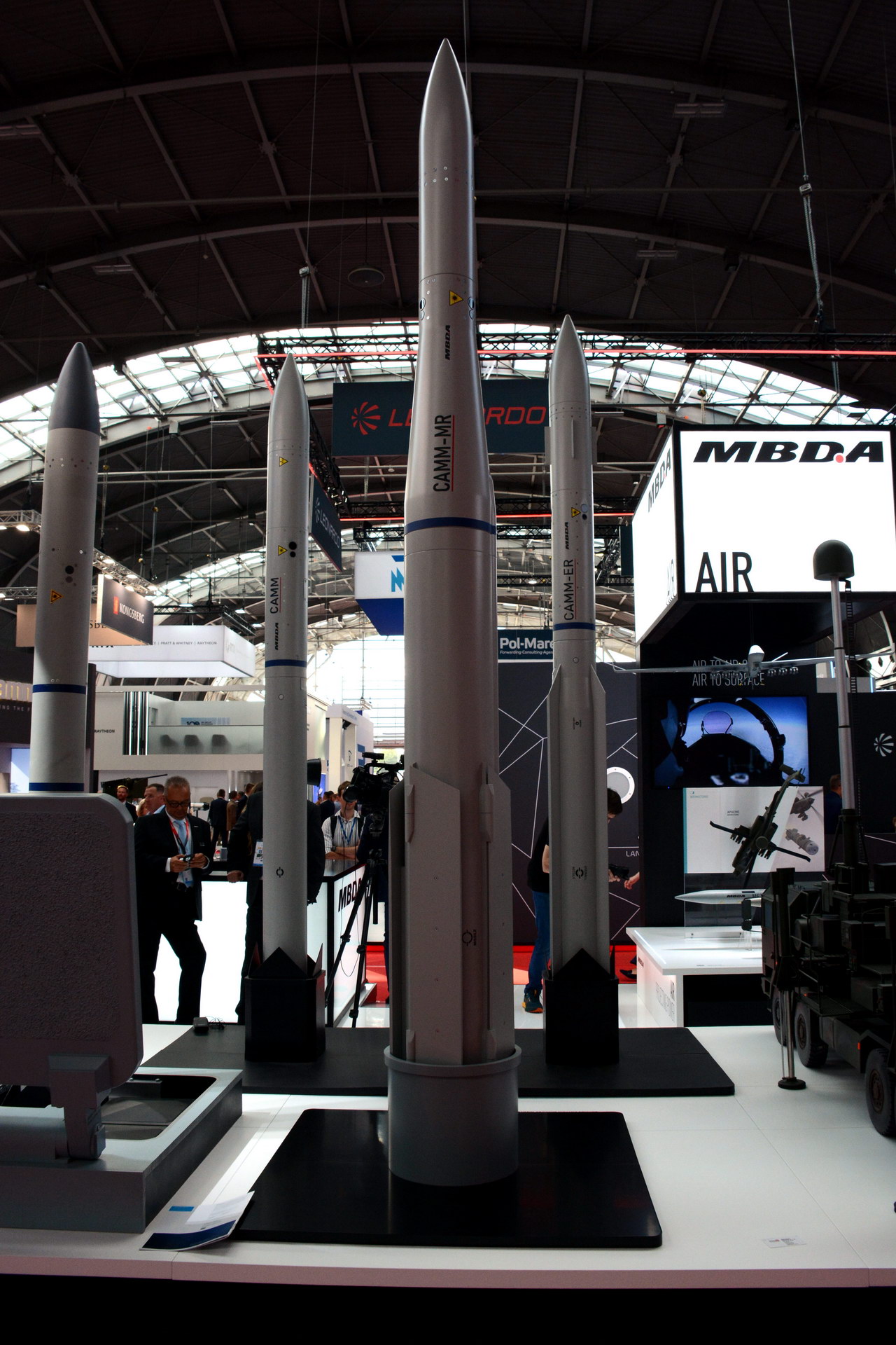 Rodzina pocisków CAMM na stoisku MBDA. Widoczny na pierwszym planie CAMM-MR dopiero powstanie. Obecnie znajduje się on na etapie uzgodnień międzypaństwowych pomiędzy Polską, Wielką Brytanią i Włochami / Zdjęcia: Przemysław Gurgurewicz, MILMAG
