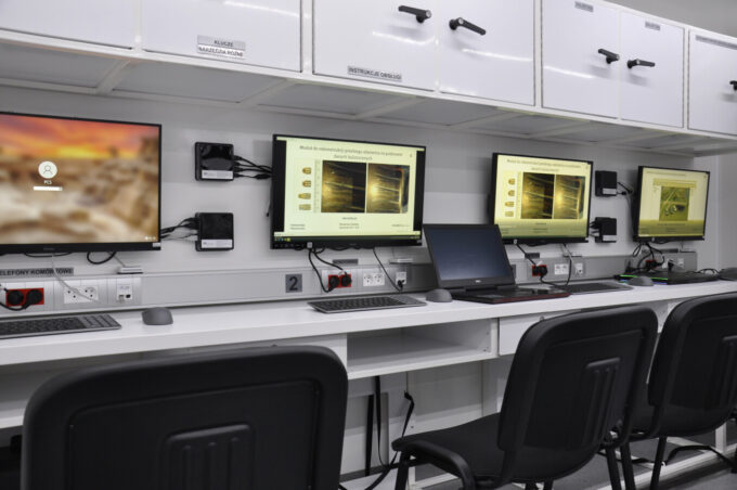Mobilna Platforma Kryminalistyczna dysponuje sześcioma miejscami pracy dla specjalistów kryminalistyki w ramach następujących modułów: