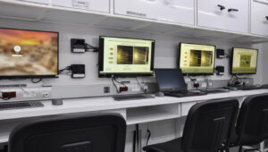 Mobilna Platforma Kryminalistyczna dysponuje sześcioma miejscami pracy dla specjalistów kryminalistyki w ramach następujących modułów: