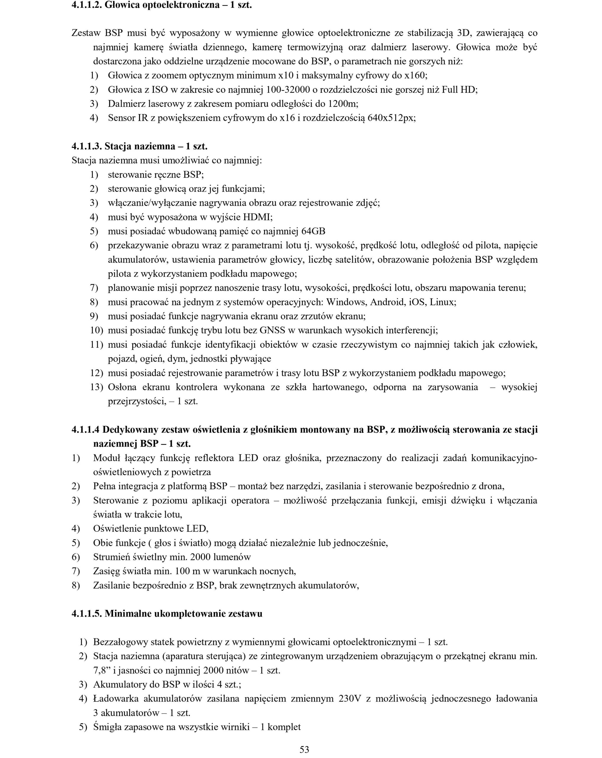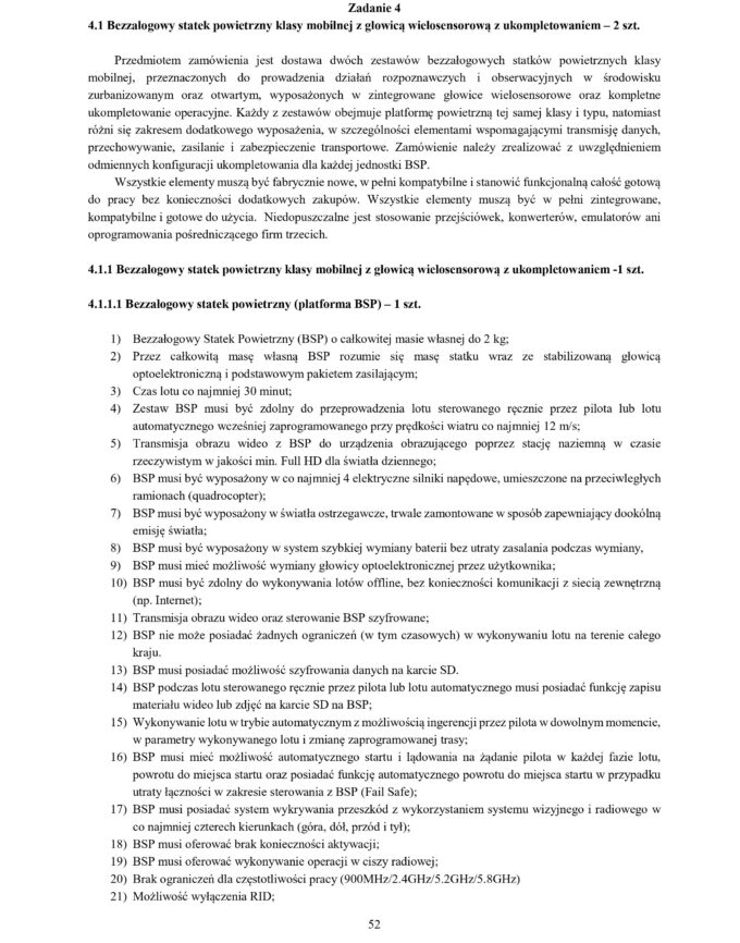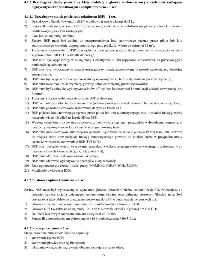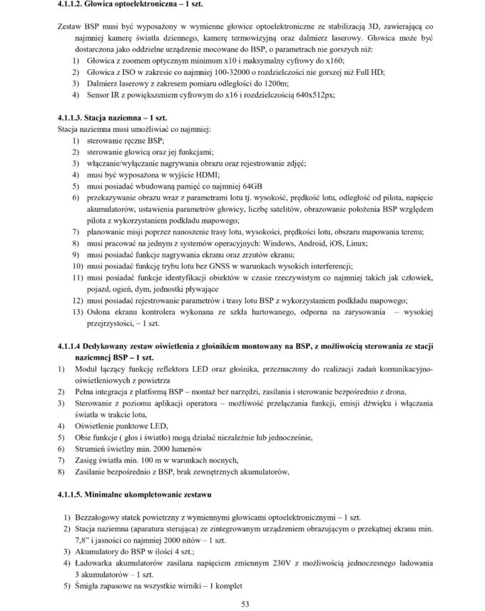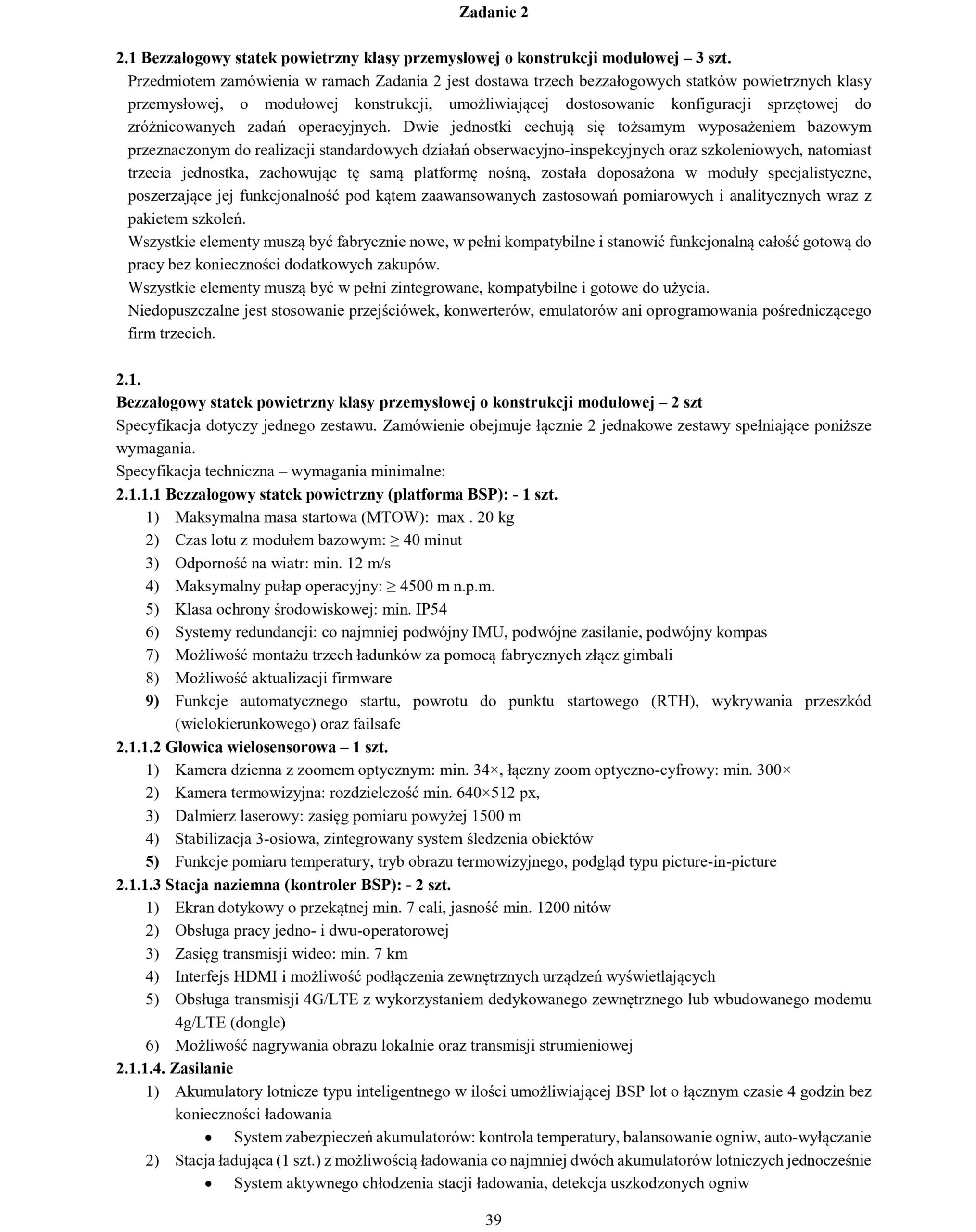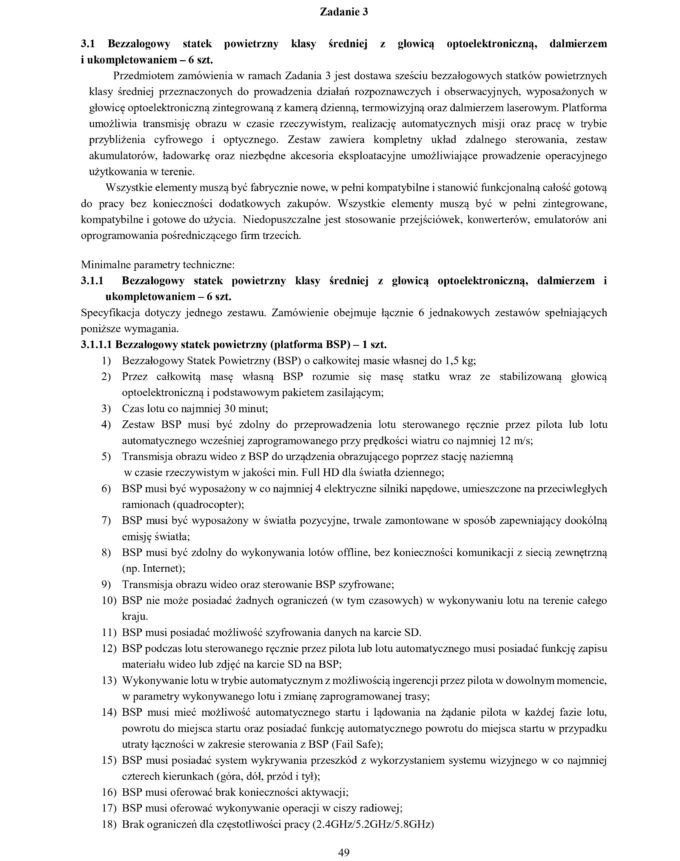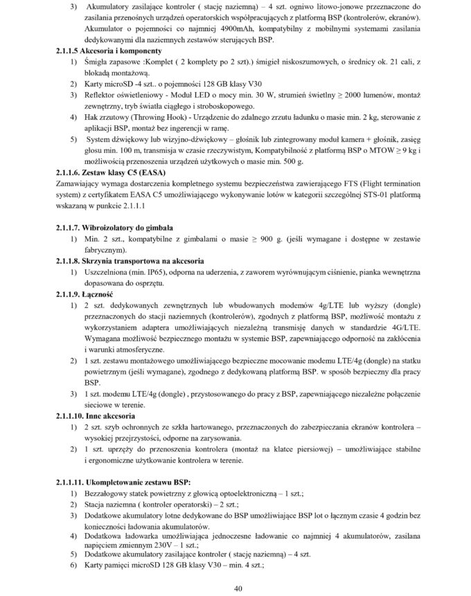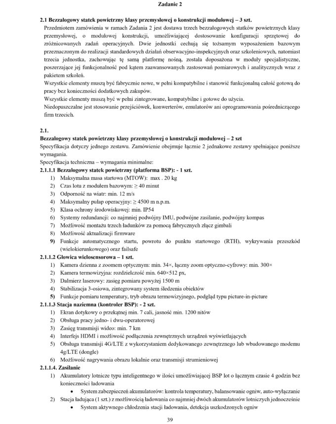 - dwóch bezzałogowych statków powietrznych klasy taktycznej z kamerą wielosensorową z ukompletowaniem;
