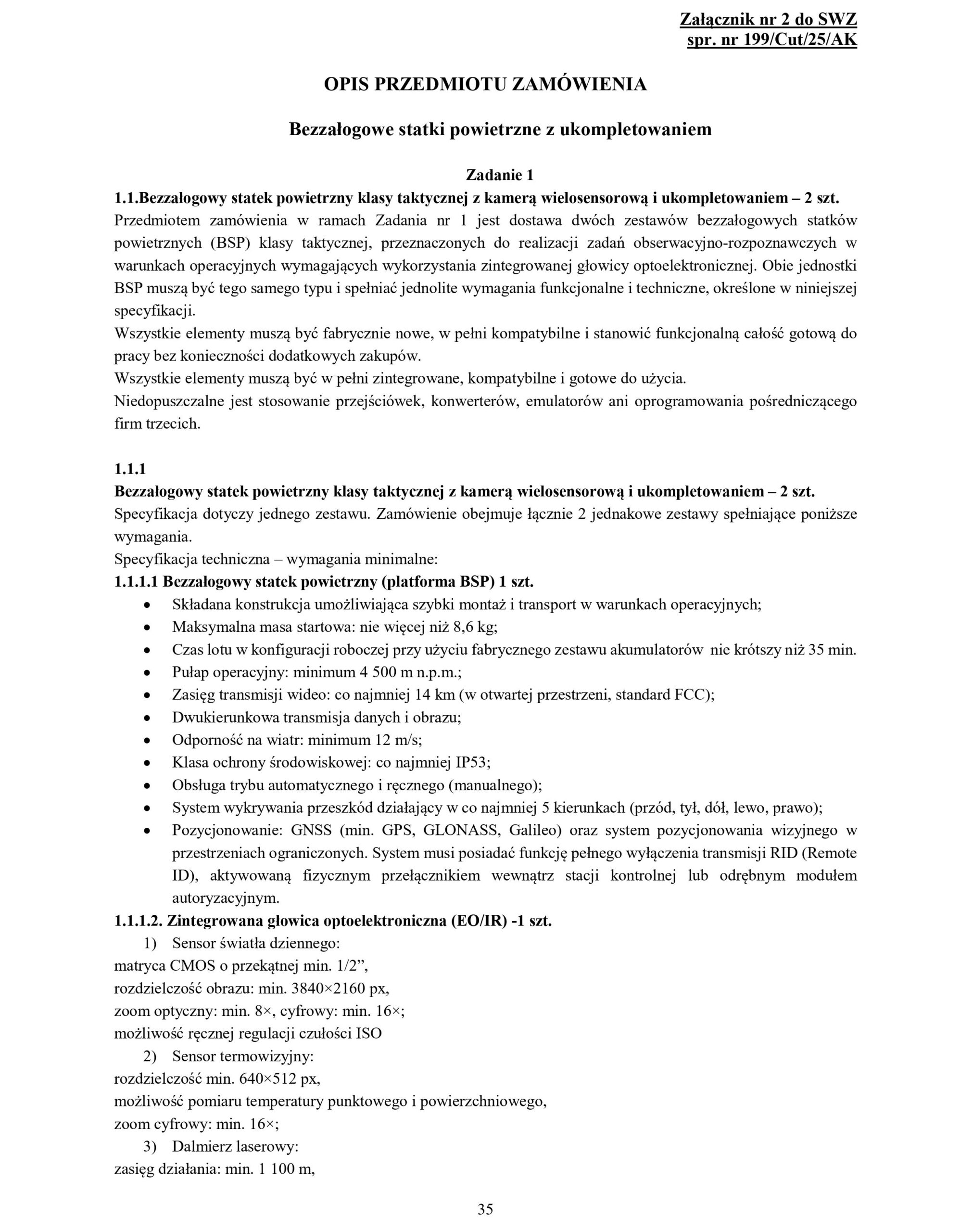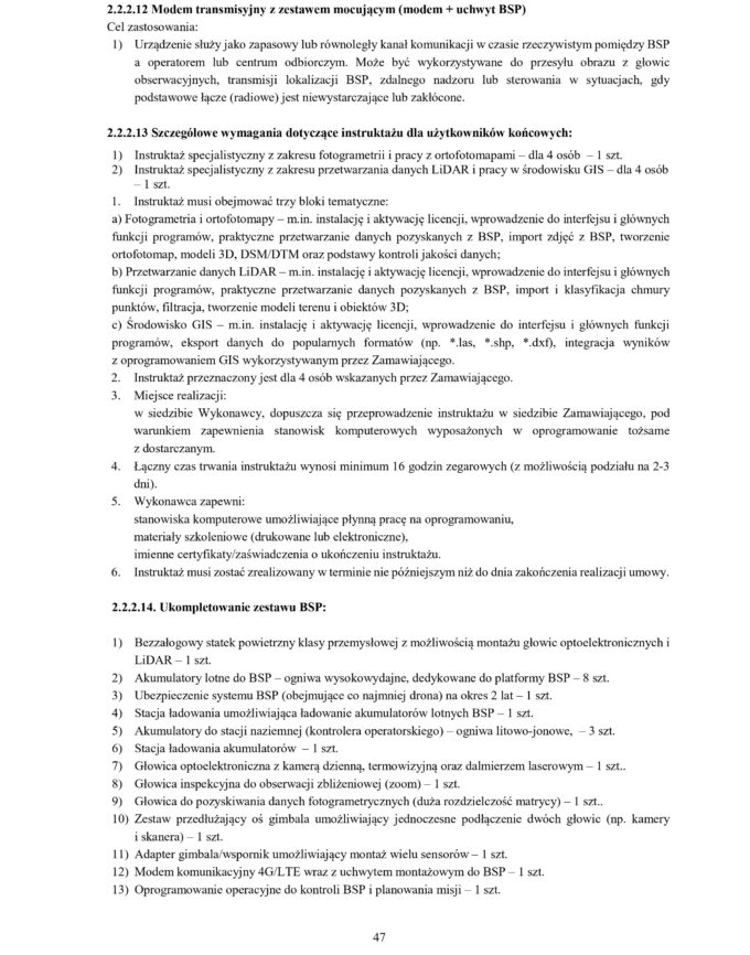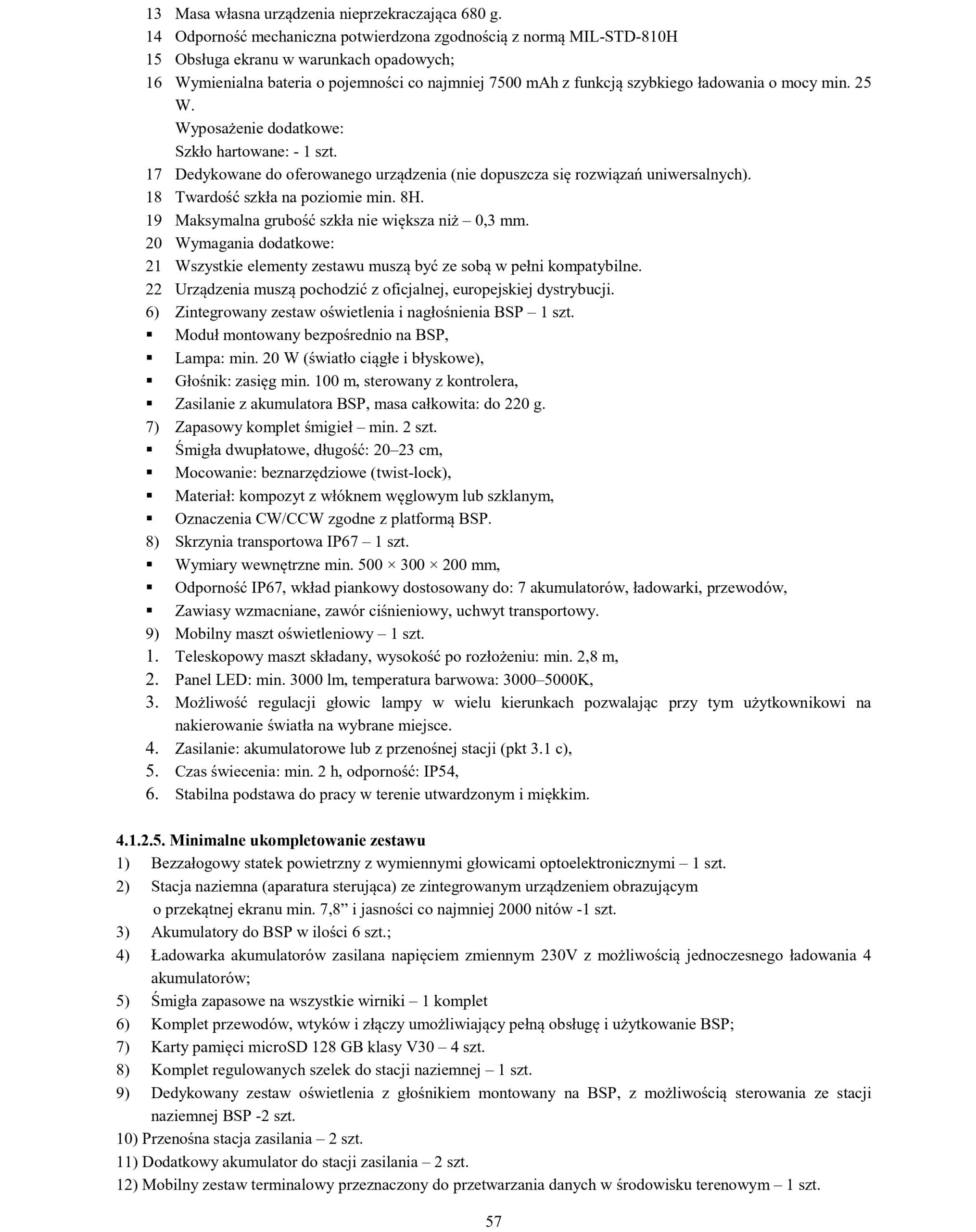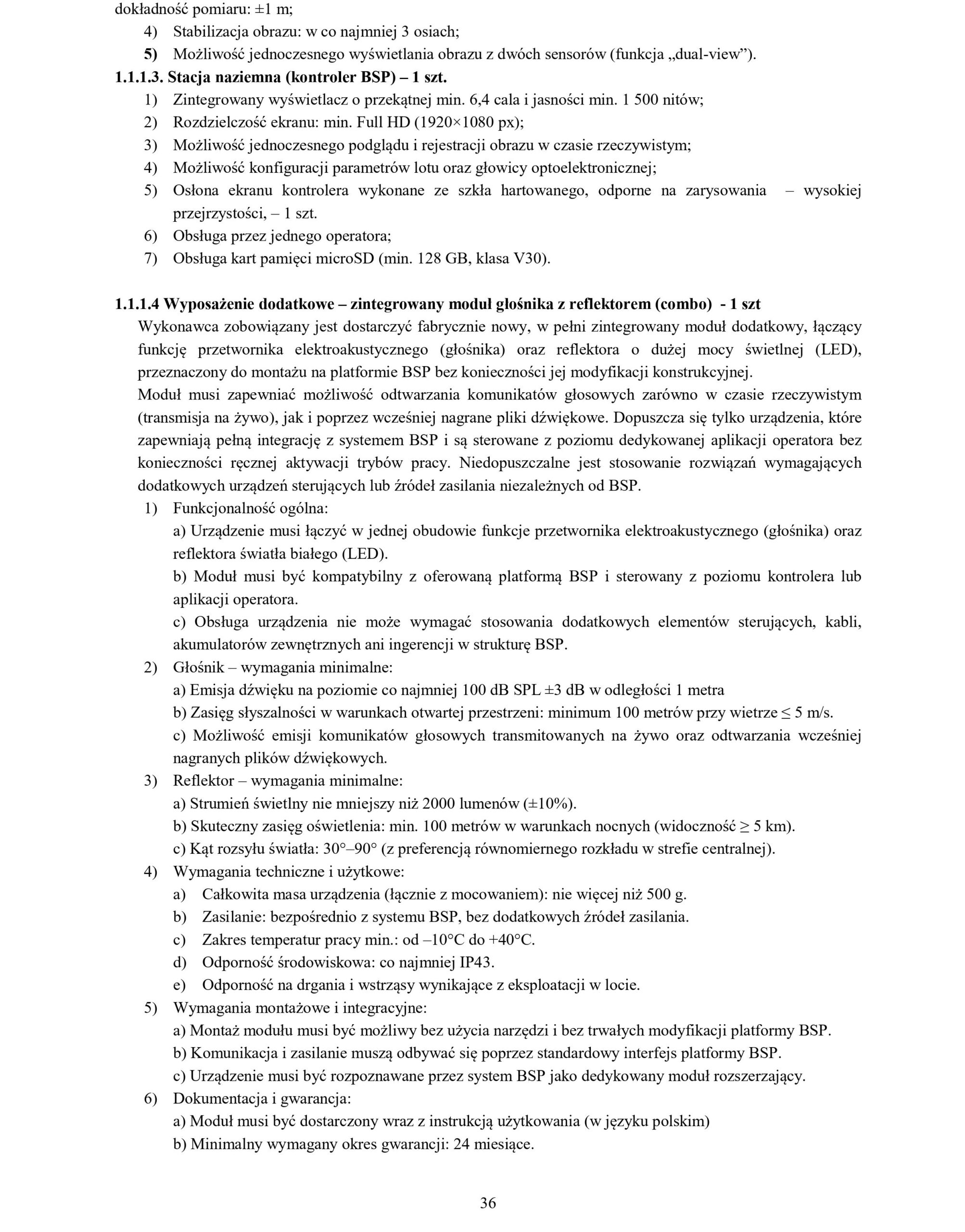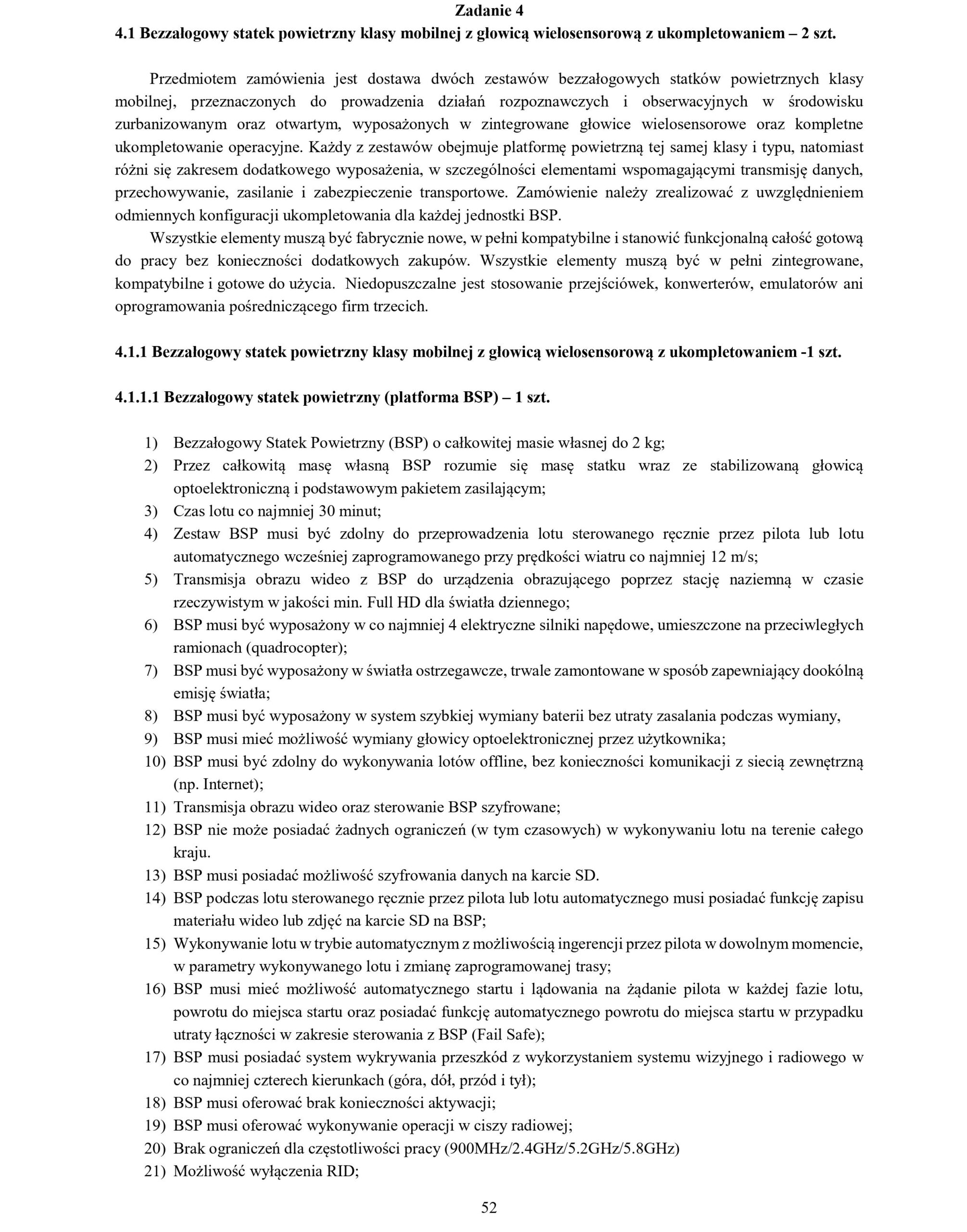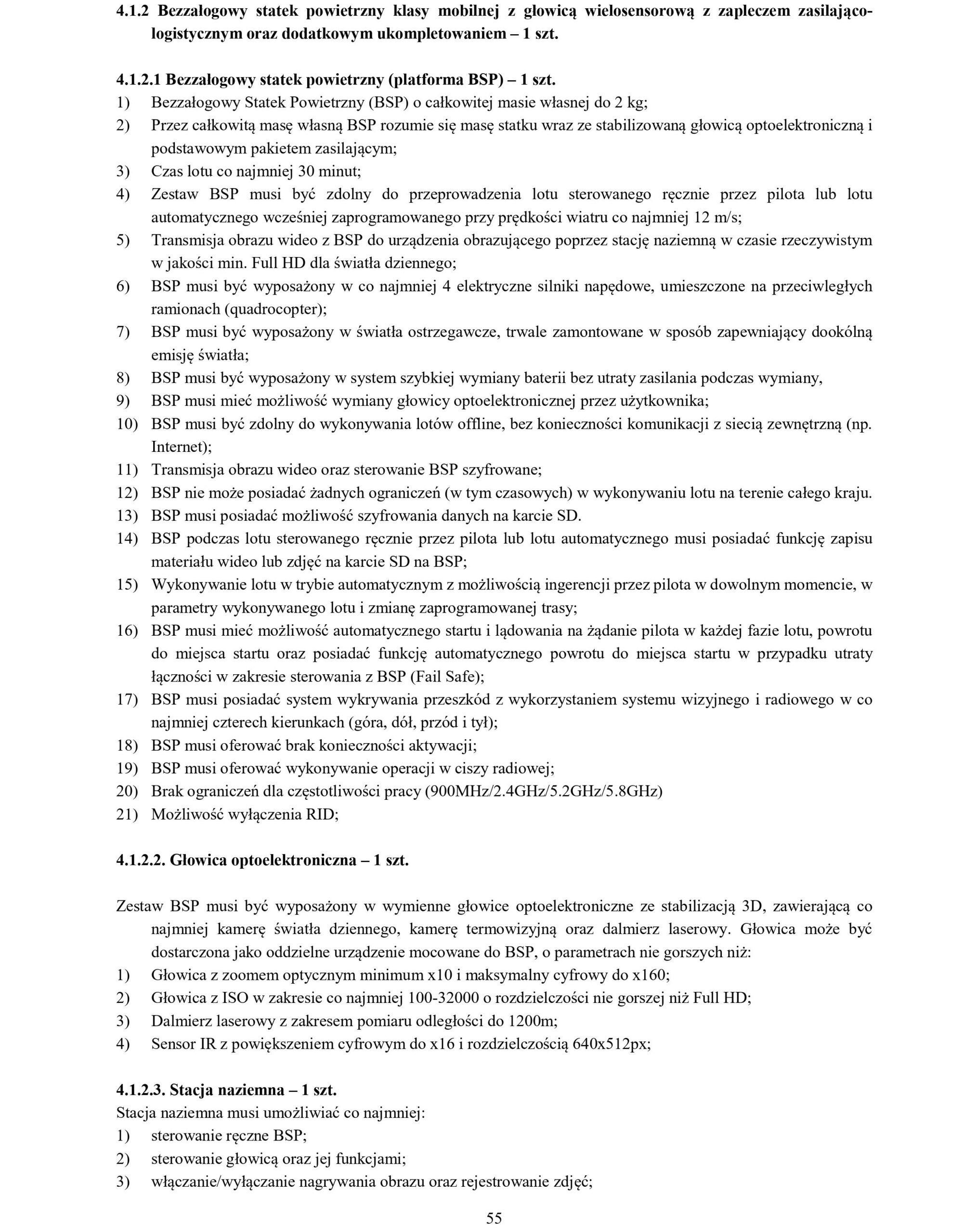 - dwóch bezzałogowych statków powietrznych klasy taktycznej z kamerą wielosensorową z ukompletowaniem;