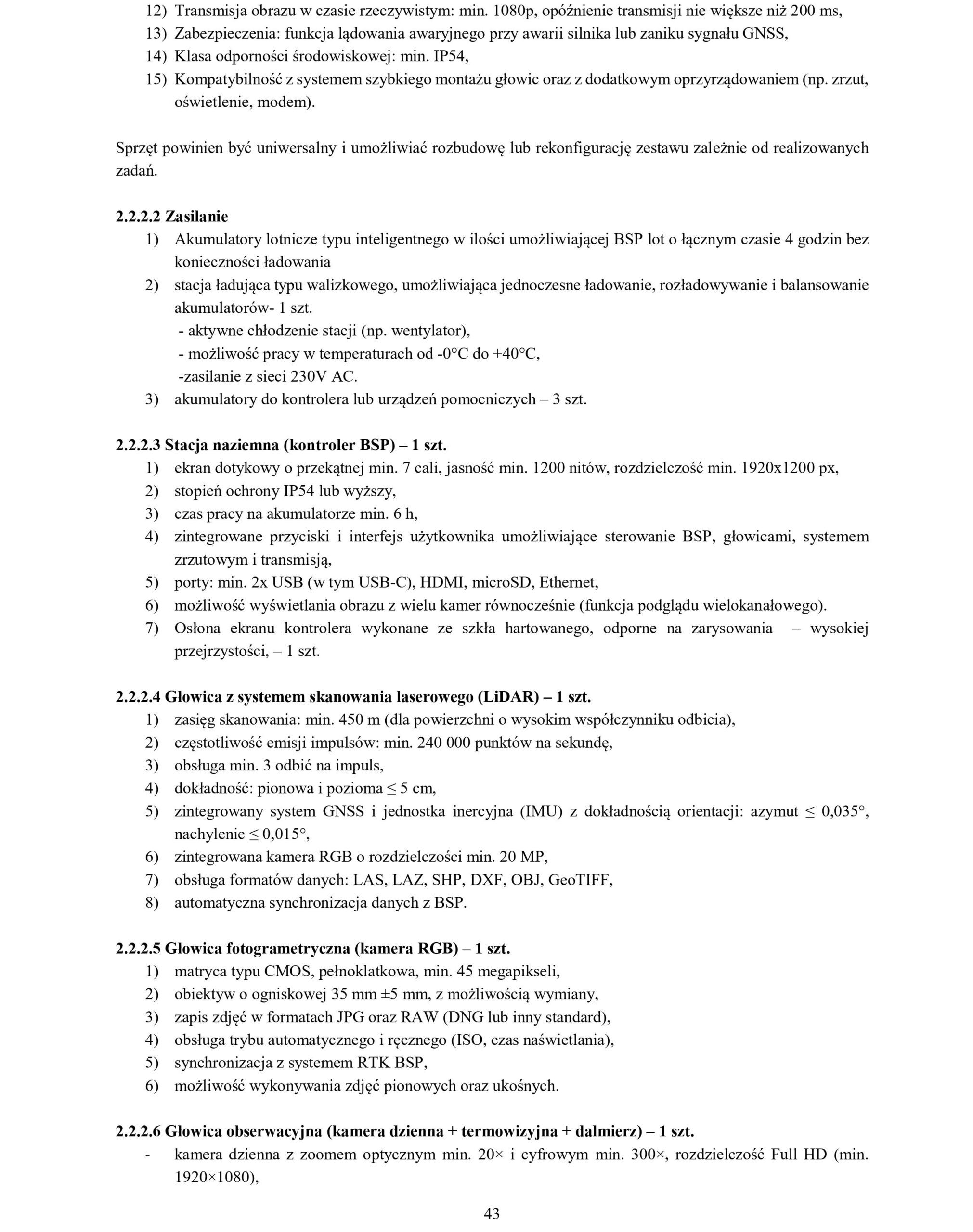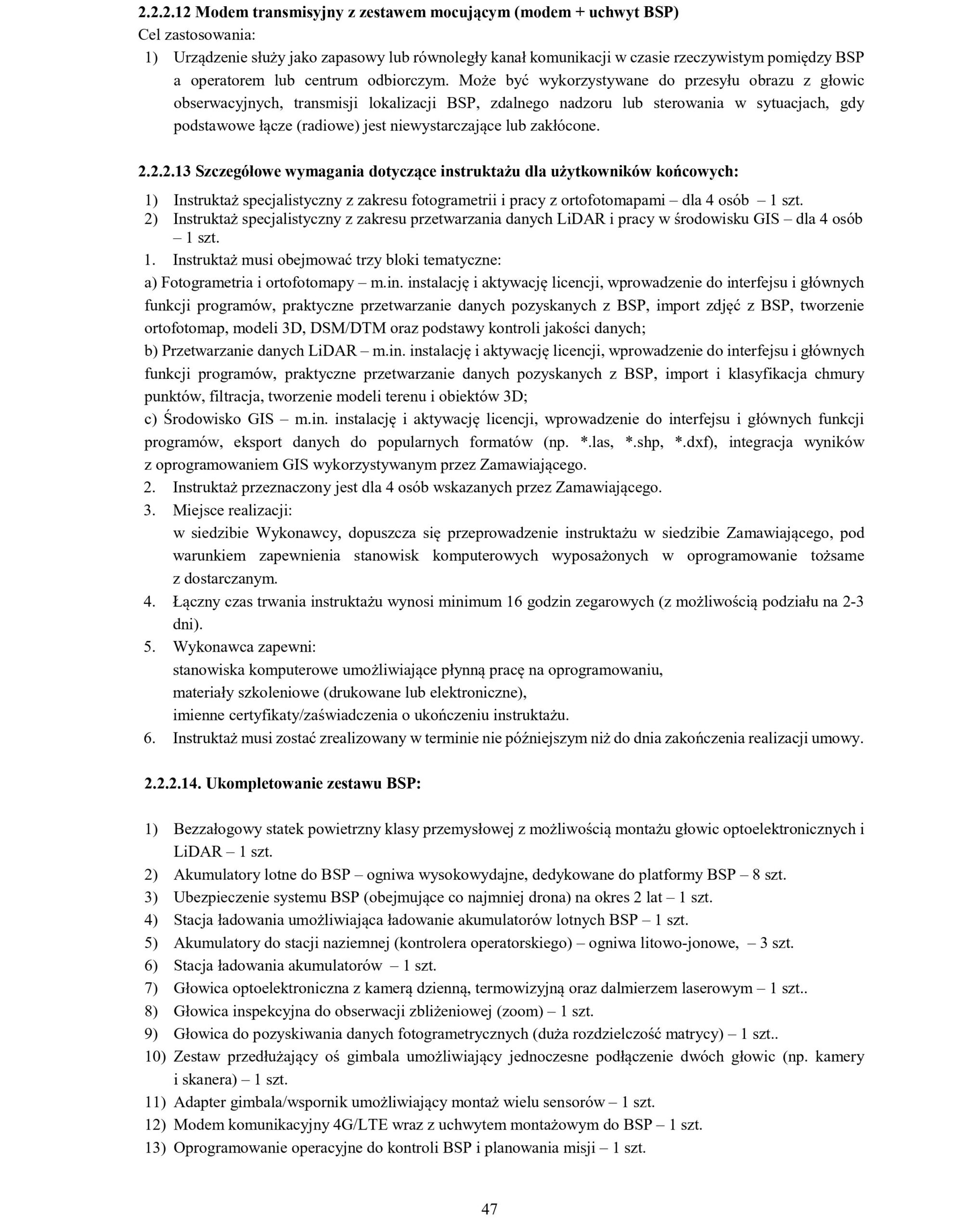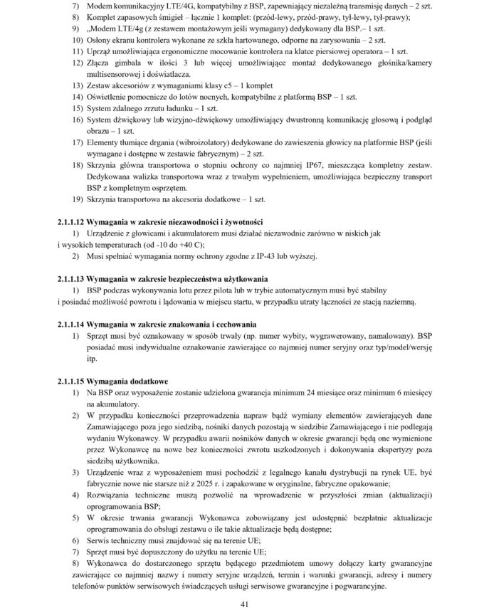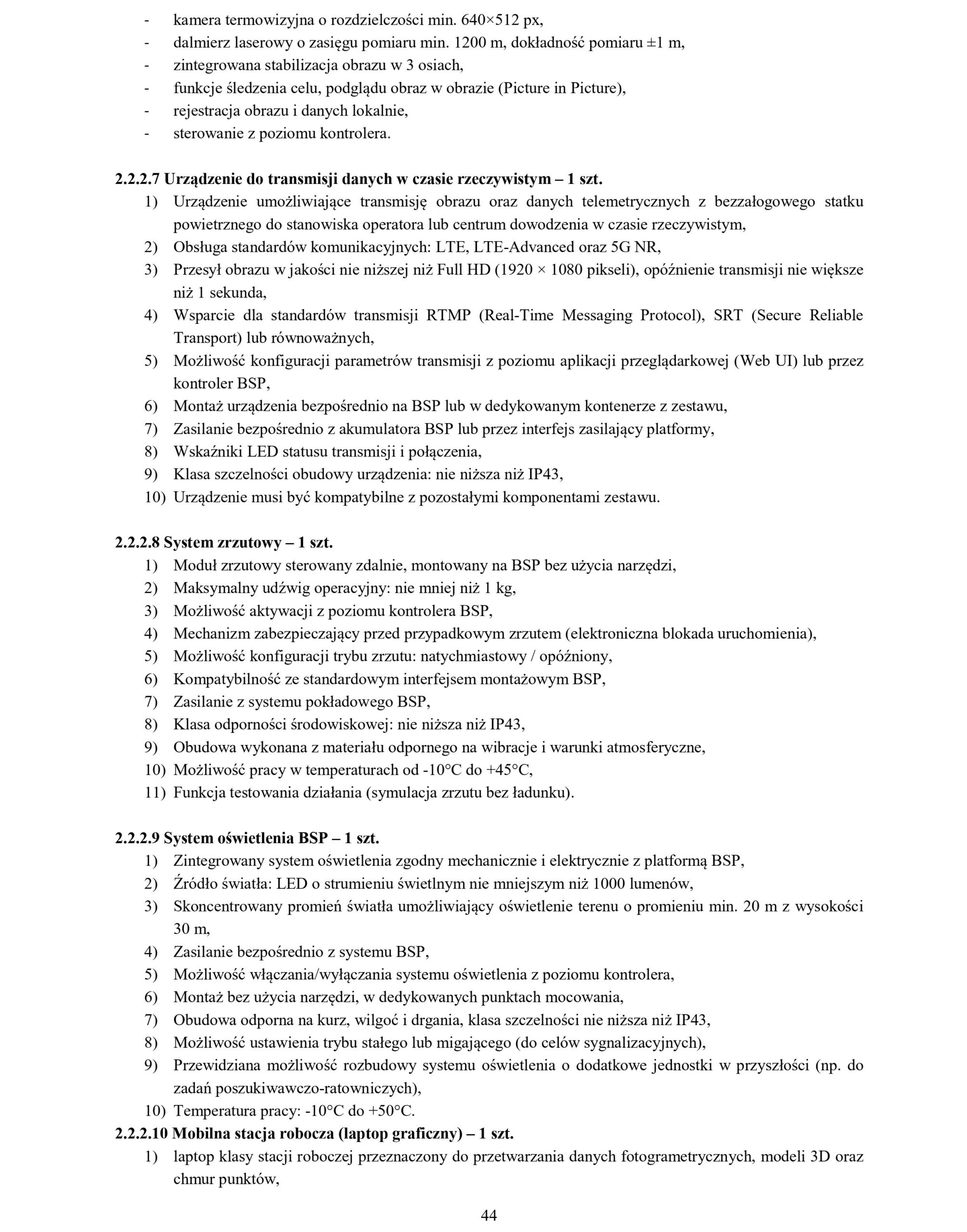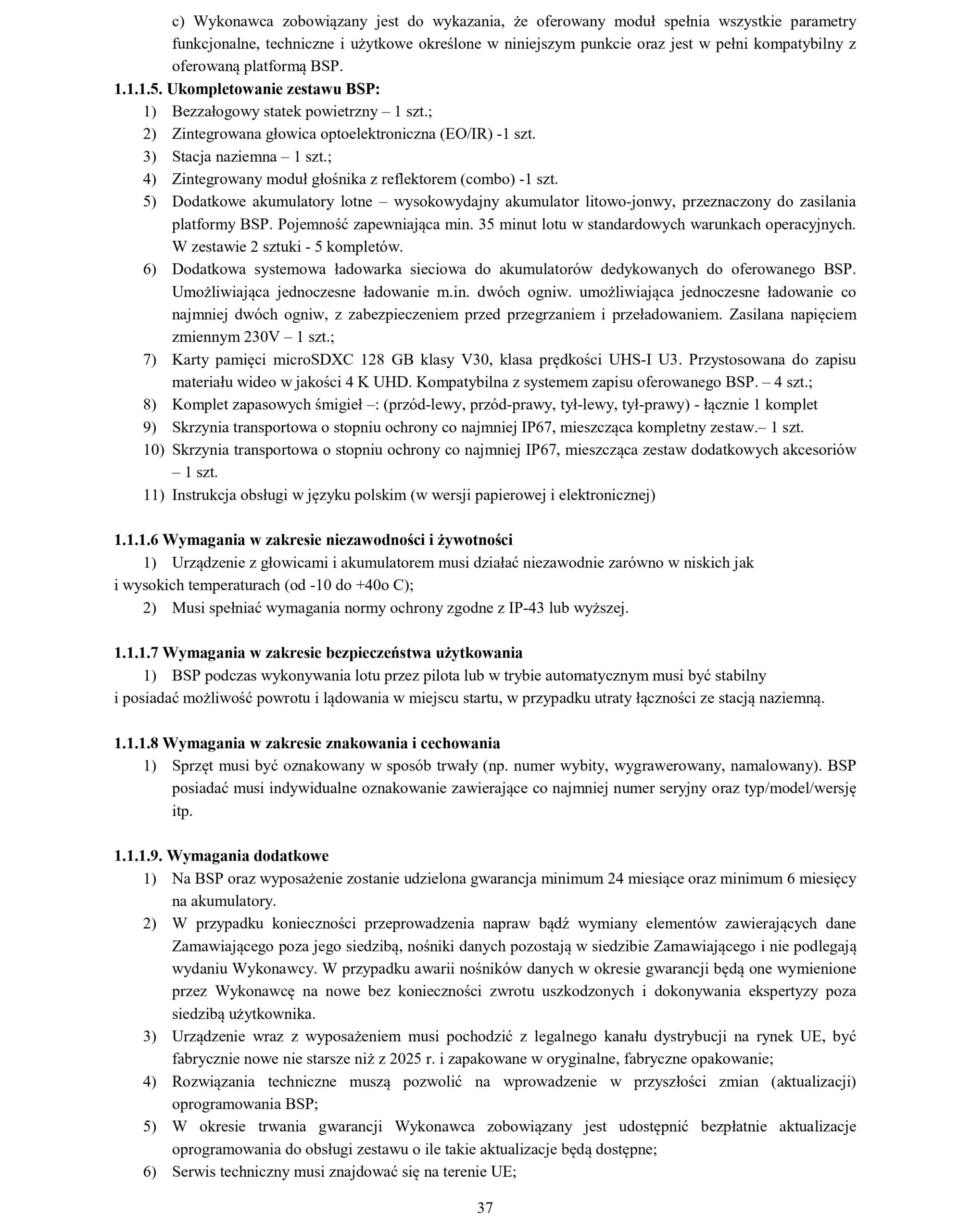 - dwóch bezzałogowych statków powietrznych klasy taktycznej z kamerą wielosensorową z ukompletowaniem;