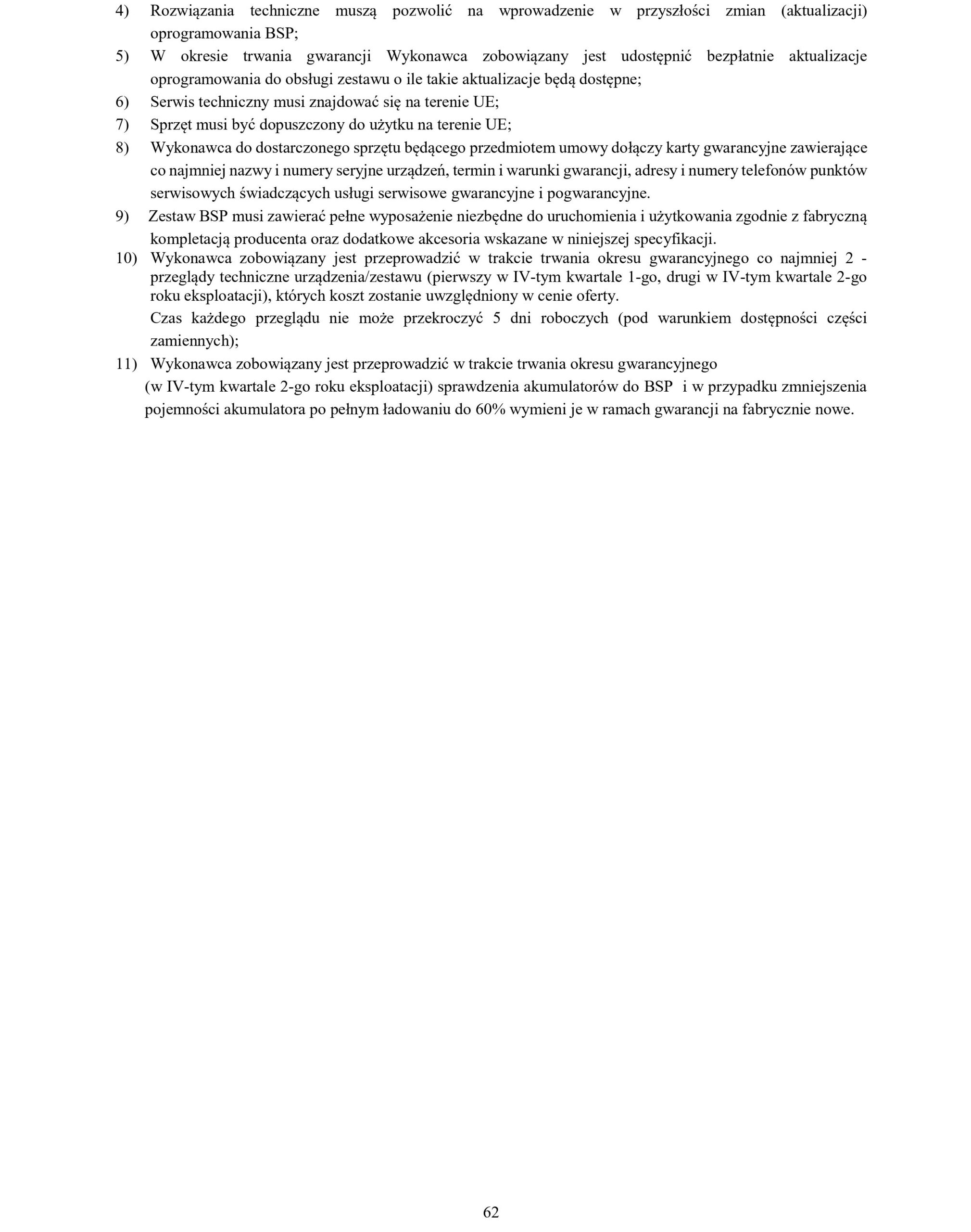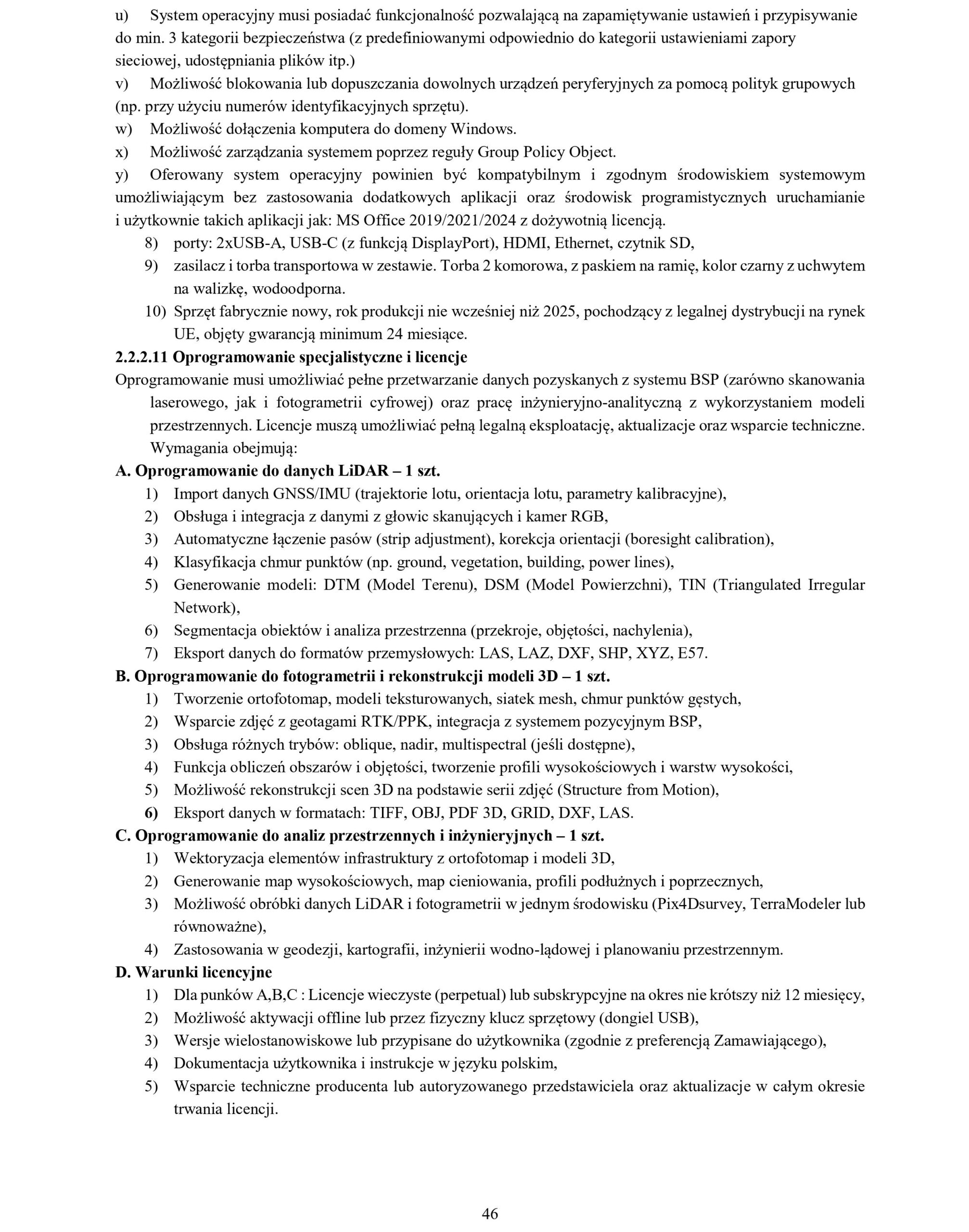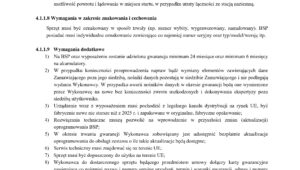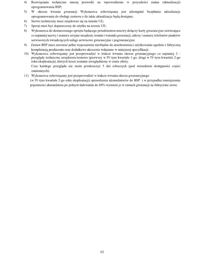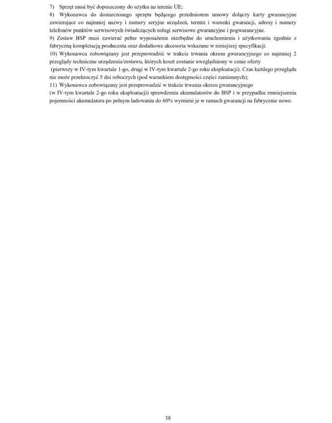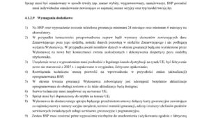 Zamawiający oczekuje realizacji zamówienia w ciągu 50 dni od daty zawarcia umowy. Ponadto, Policja żąda złożenia wraz z ofertą kart katalogowych oferowanego sprzętu i/lub inne materiały informacyjne wydane przez producenta lub szczegółowy opis oferowanego sprzętu odnoszący się do wymagań określonych w Opisie Przedmiotu Zamówienia, fotografie oferowanego produktu oraz głównych elementów składających się na całość zestawu BSP, w tym: BSP, aparatura sterująca, głowice optoelektroniczne, urządzenia obrazujące, sprzęt transportowy i pozostałe elementy zestawu, a także kopie certyfikatów Unii Europejskiej CE na oferowany produkt lub Deklaracji zgodności.