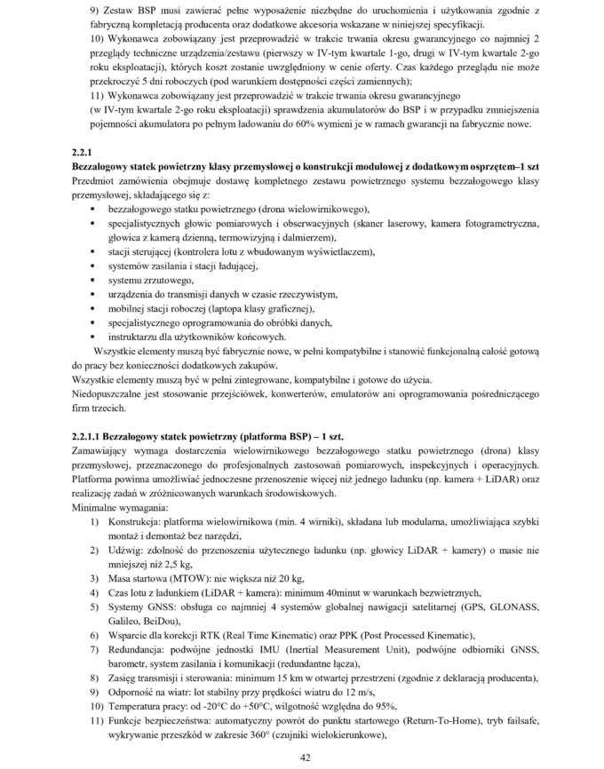 - trzech bezzałogowych statków powietrznych klasy przemysłowej o konstrukcji modułowej z ukompletowaniem;