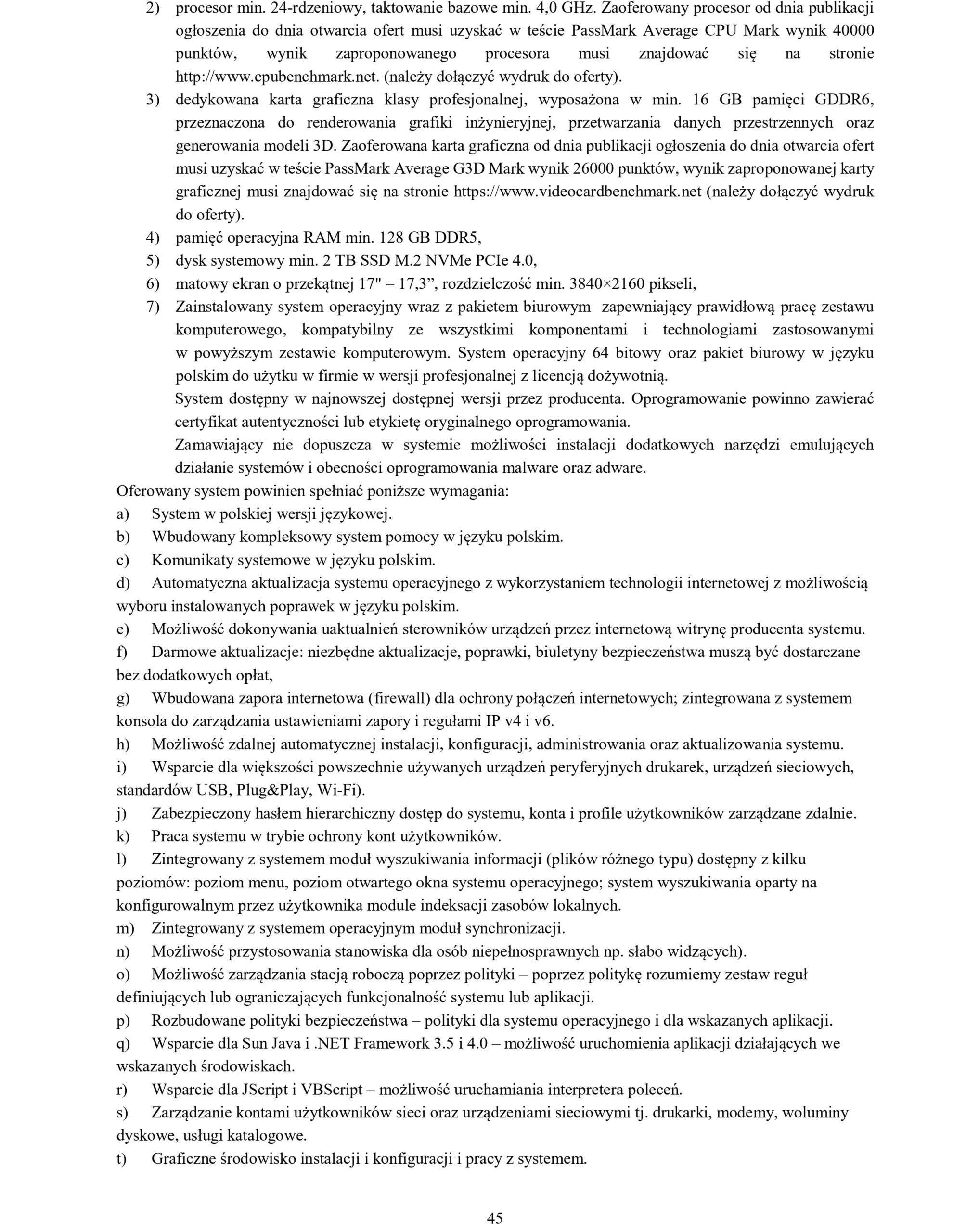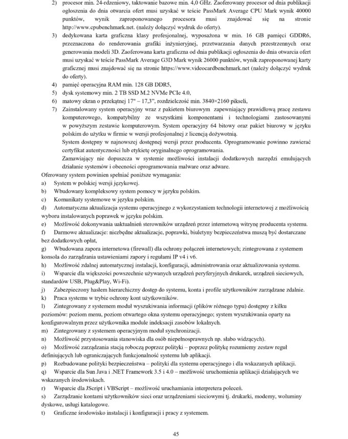 W przypadku dla mobilnego stanowiska roboczego wymagany jest wydruk testów wydajnościowych dla procesora potwierdzający uzyskanie wyniku 40 000 punktów w teście PassMark Average CPU Mark.