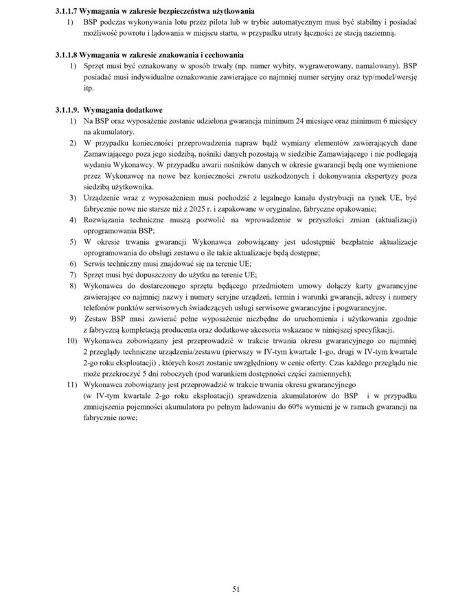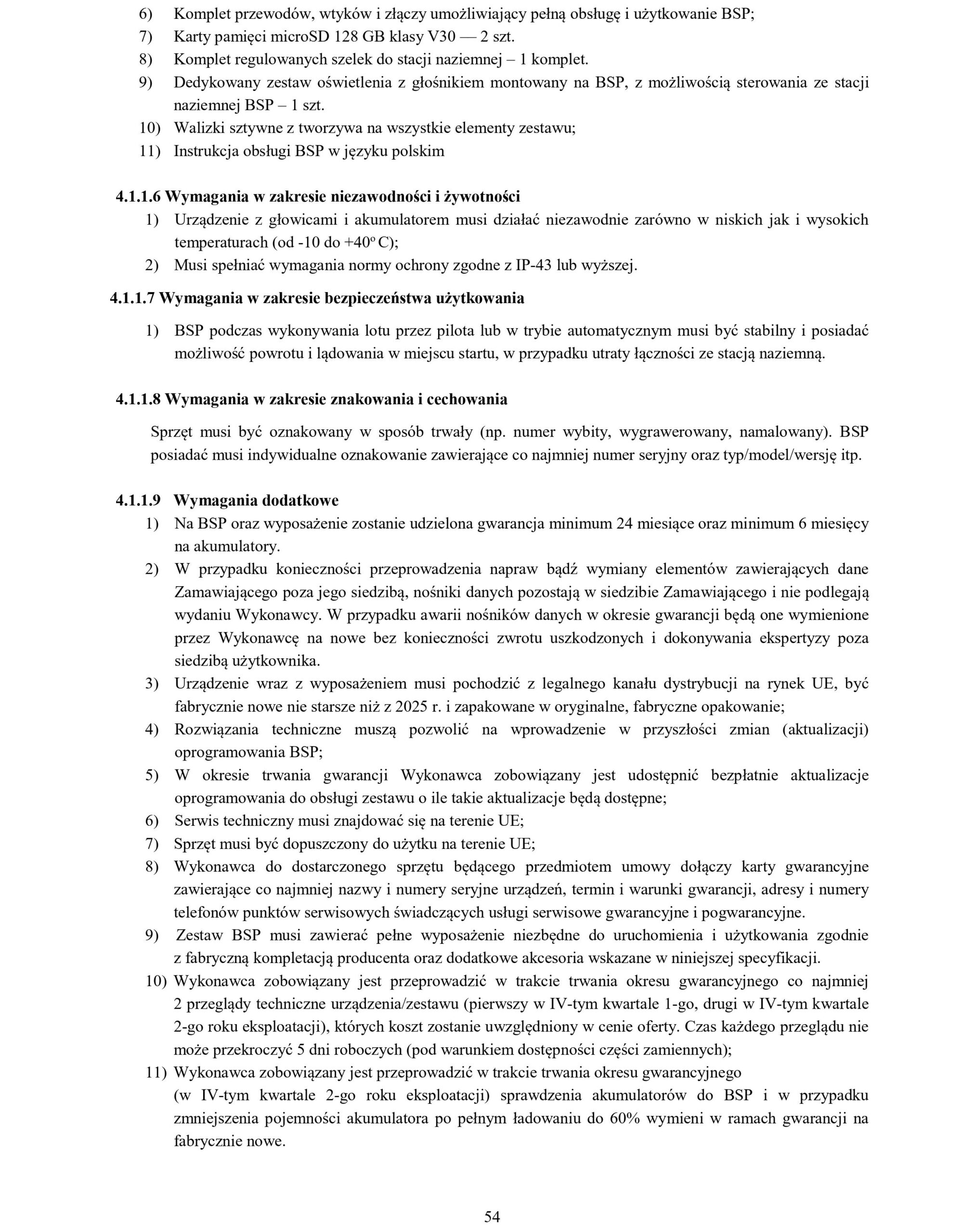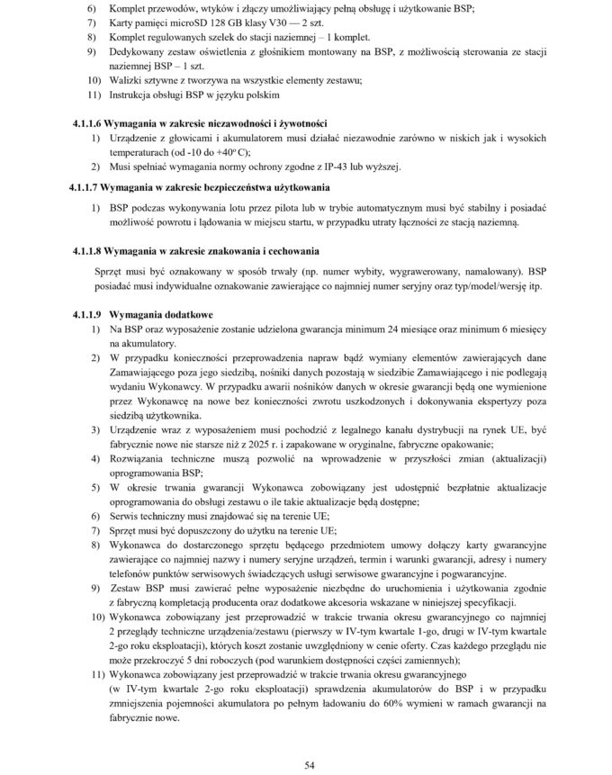 Termin składania wniosków o udział w przetargu minie 8 października 2025 o godz. 10.00. Kryteriami wyboru oferty będą cena (70%), okres gwarancji na bezzałogowy statek powietrzny i komponenty główne (platforma, kontroler, sensory, systemy transmisji) bez akumulatorów (10%), okres gwarancji na akumulatory (10%) i termin realizacji zamówienia (10%).