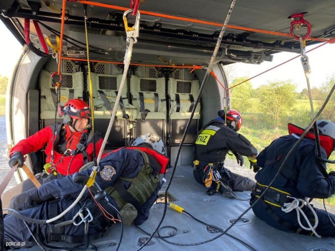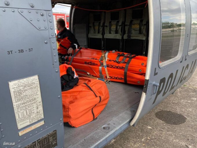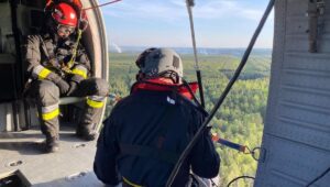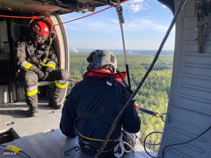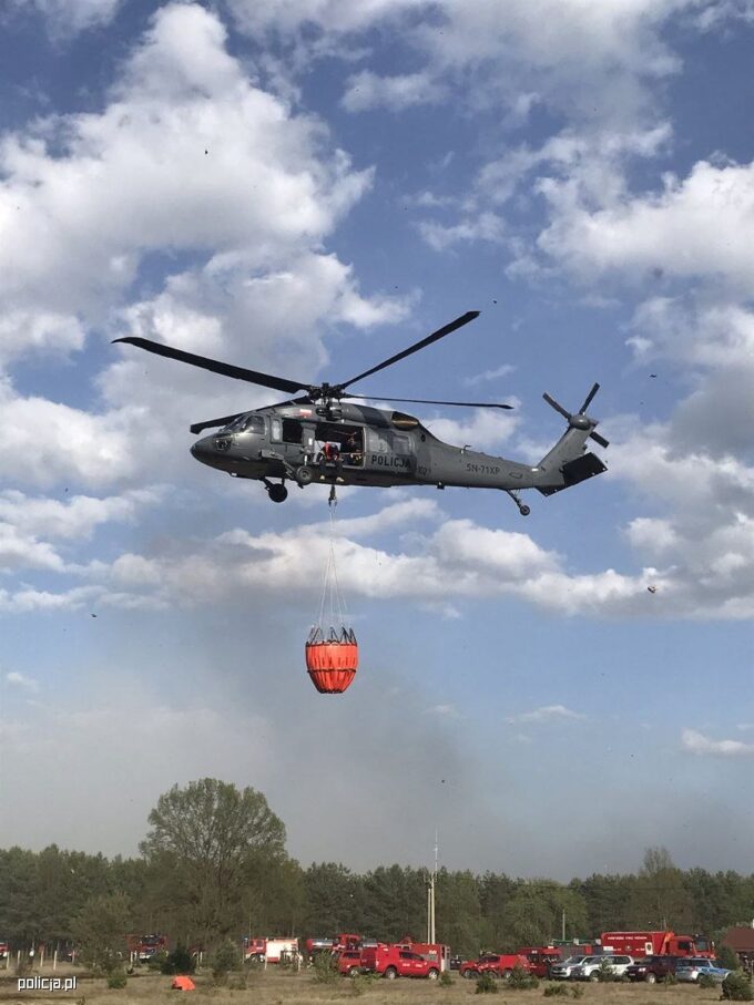 Do gaszenia pożaru obejmującego około 100 ha lasu wykorzystali podwieszany pod śmigłowiec S-70i Black Hawk zbiornik na wodę typu Bambi Bucket, który dostarczyła spółka Parasnake Arkadiusz Szewczyk / Zdjęcia: Policja